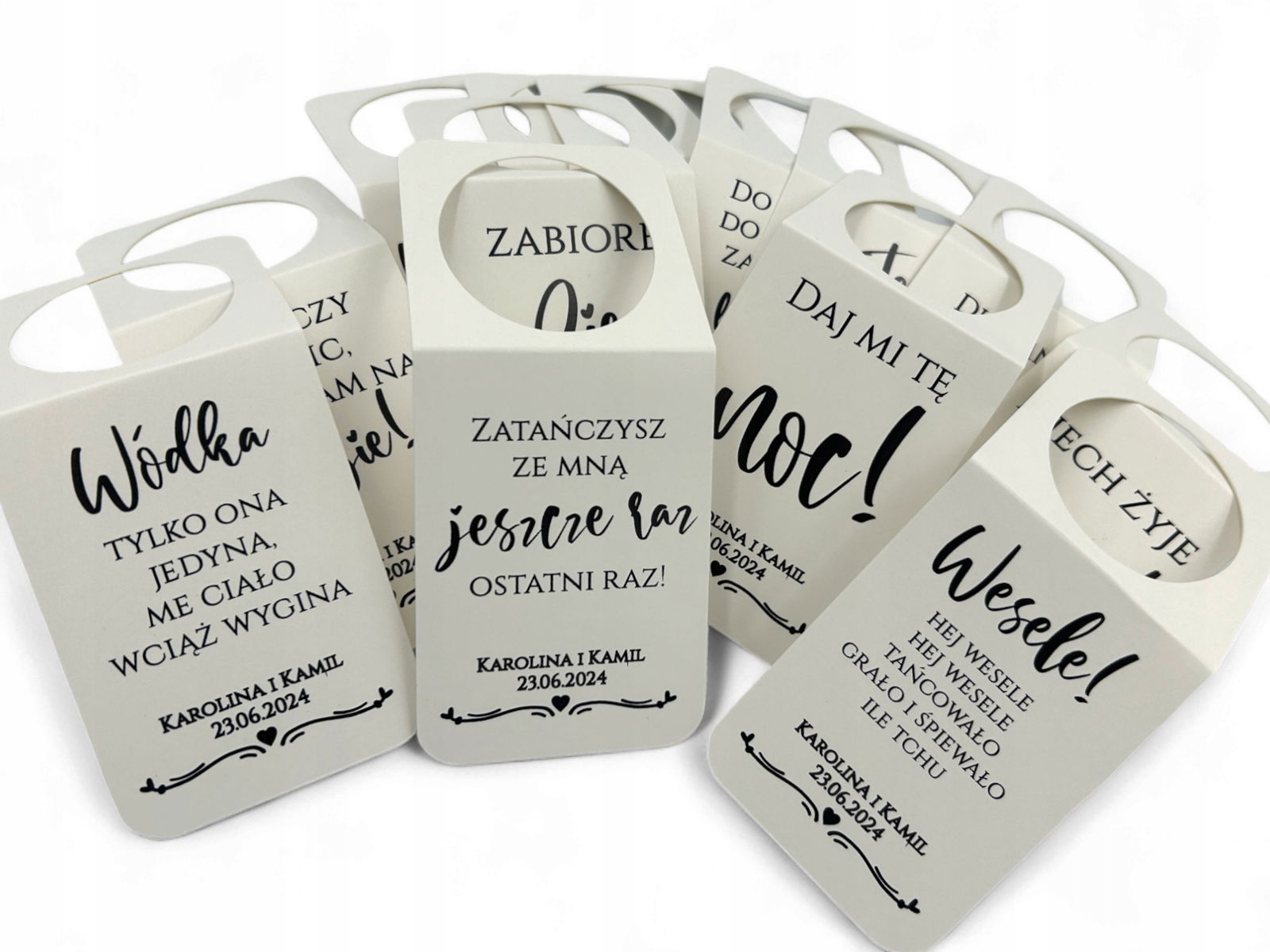 Zawieszki na alkohol weselny Z TEKSTAMI PIOSENEK! - 100 sztuk mix tekstów