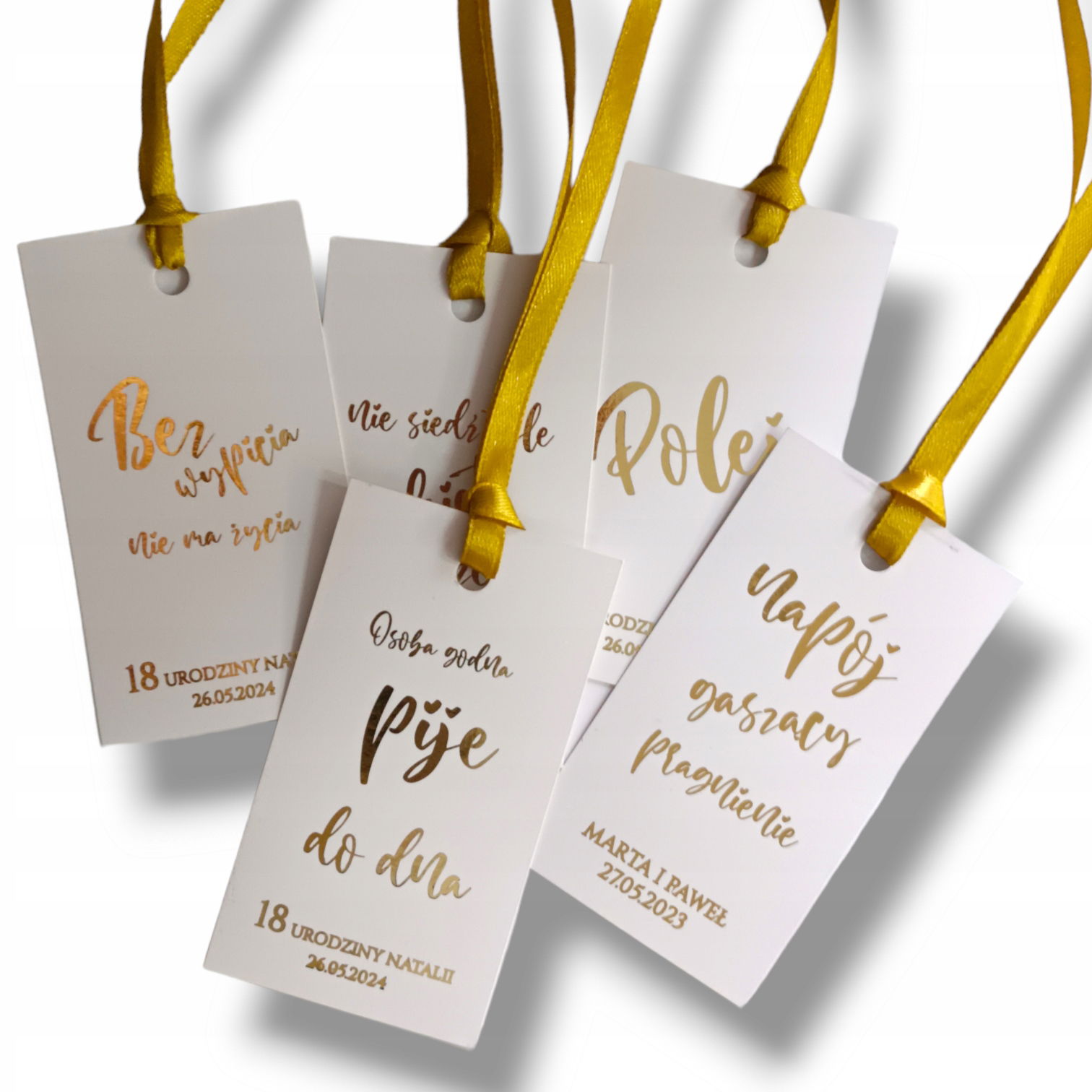 ZESTAW ZAWIESZEK NA ALKOHOL  ŚMIESZNE URODZINY ZŁOCONE