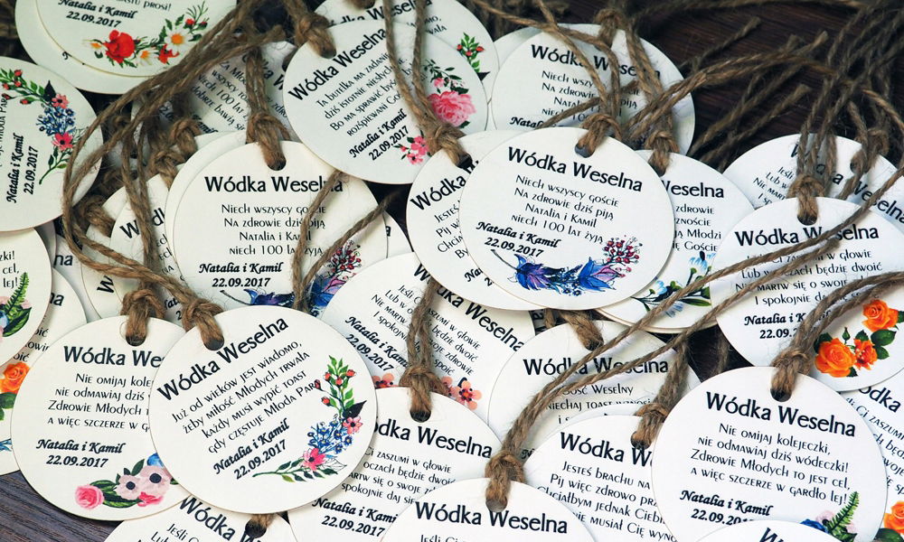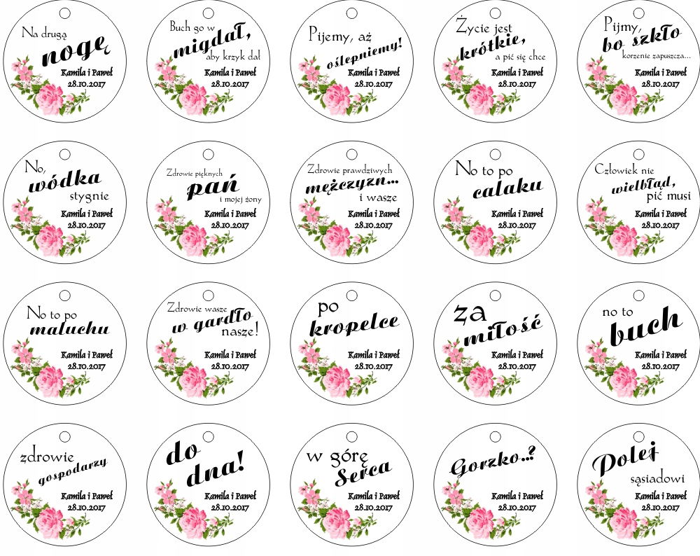ZAWIESZKI na alkohol wódke ETYKIETY 50 szt ślub PR 617