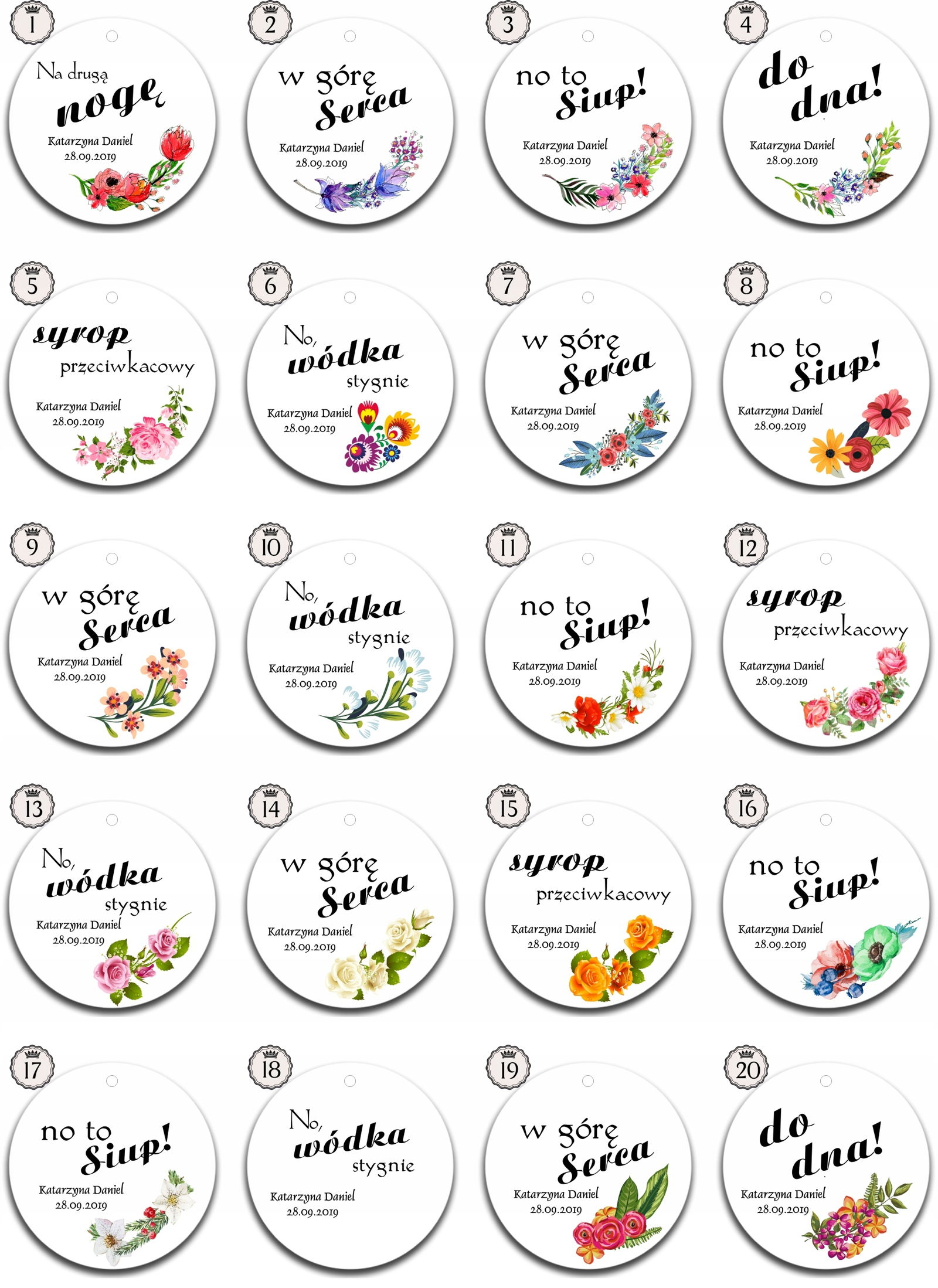 ZAWIESZKI na alkohol wódke ETYKIETY 50 szt ślub PR 617