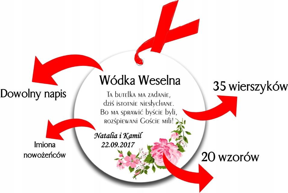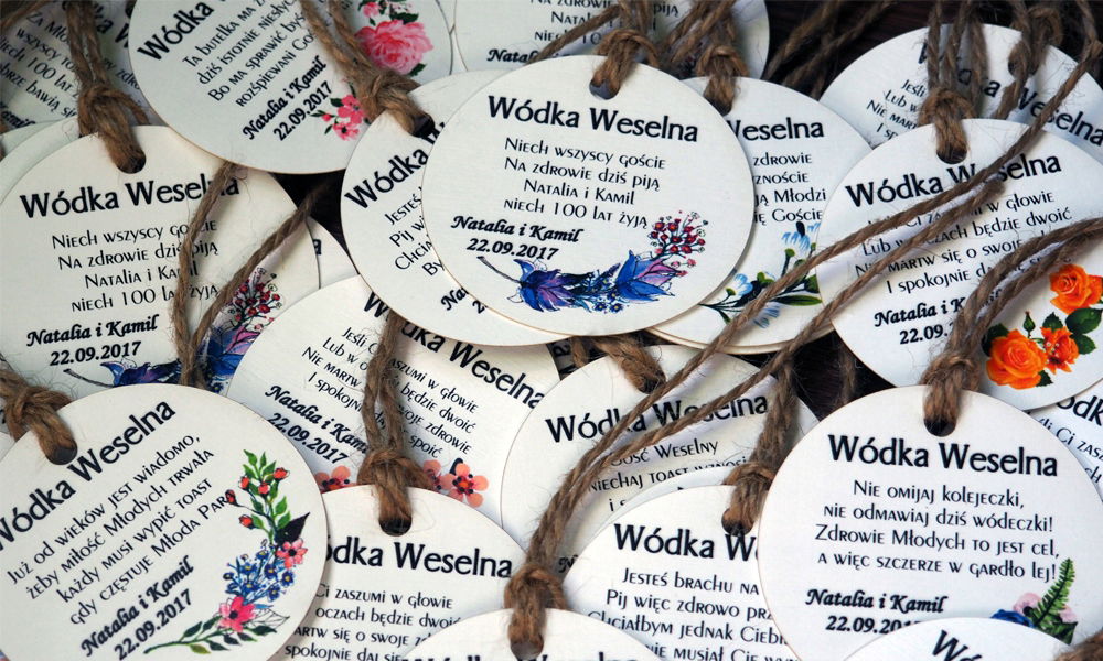 ZAWIESZKI na alkohol wódke ETYKIETY 50 szt ślub PR 624
