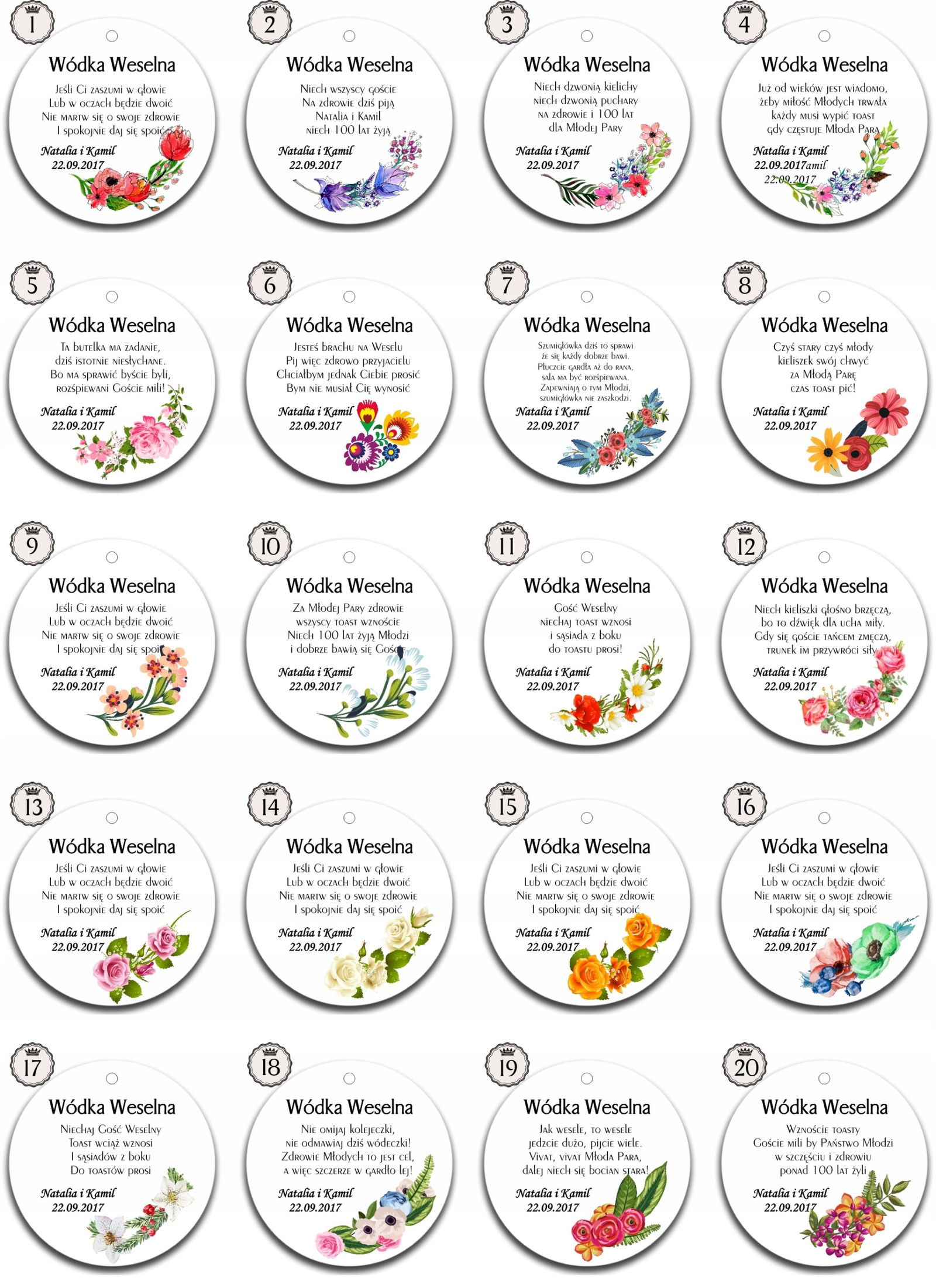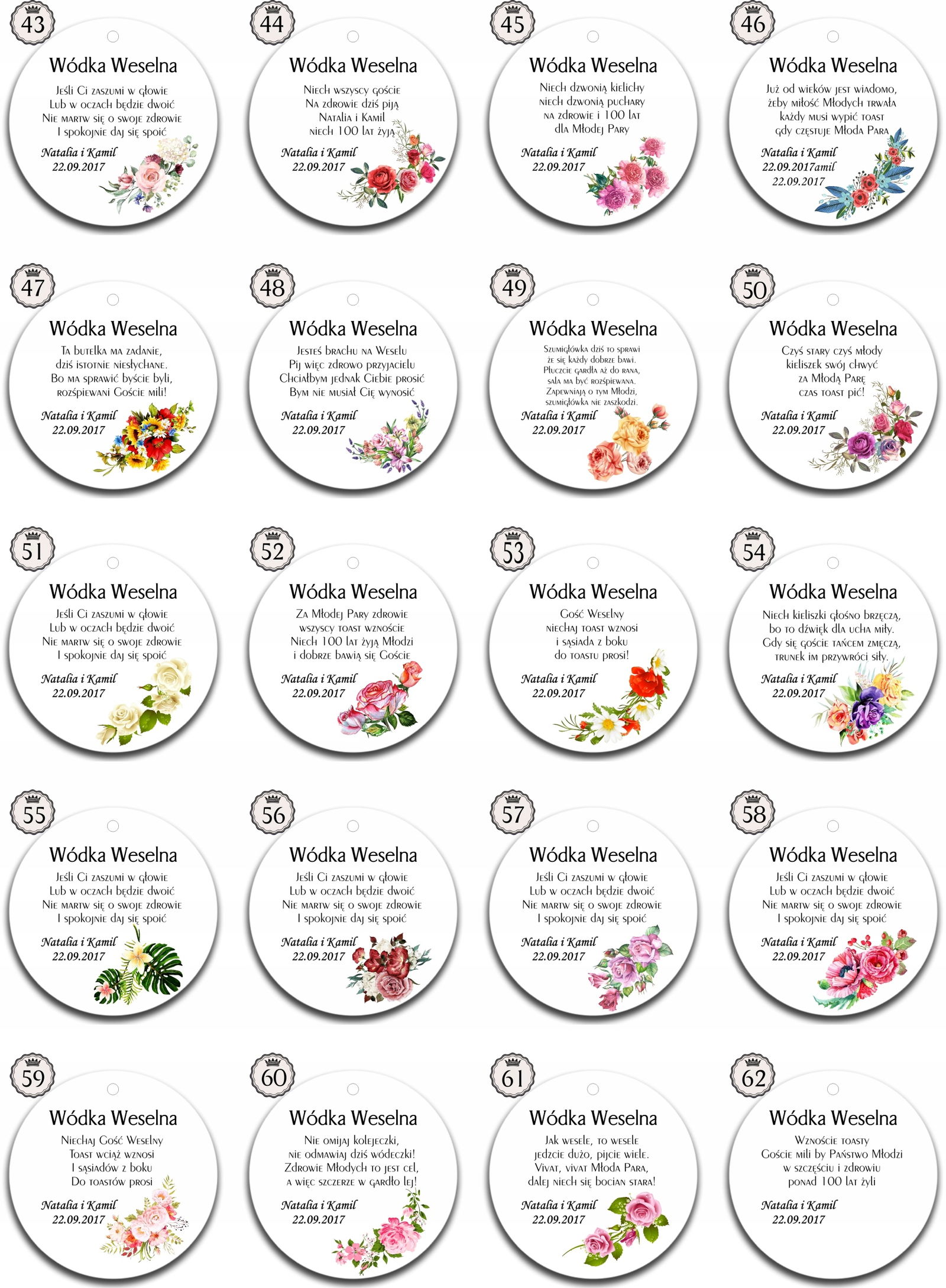 ZAWIESZKI na alkohol wódke ETYKIETY 50 szt ślub PR 624