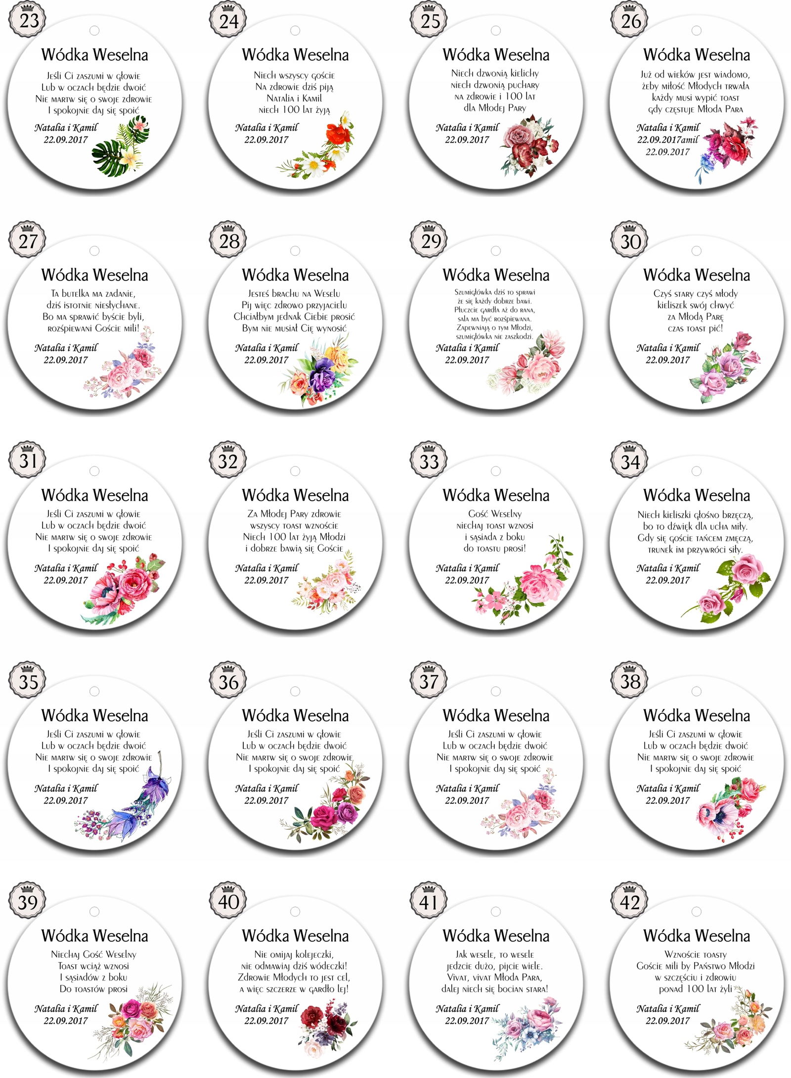 ZAWIESZKI na alkohol wódke ETYKIETY 50 szt ślub PR 624