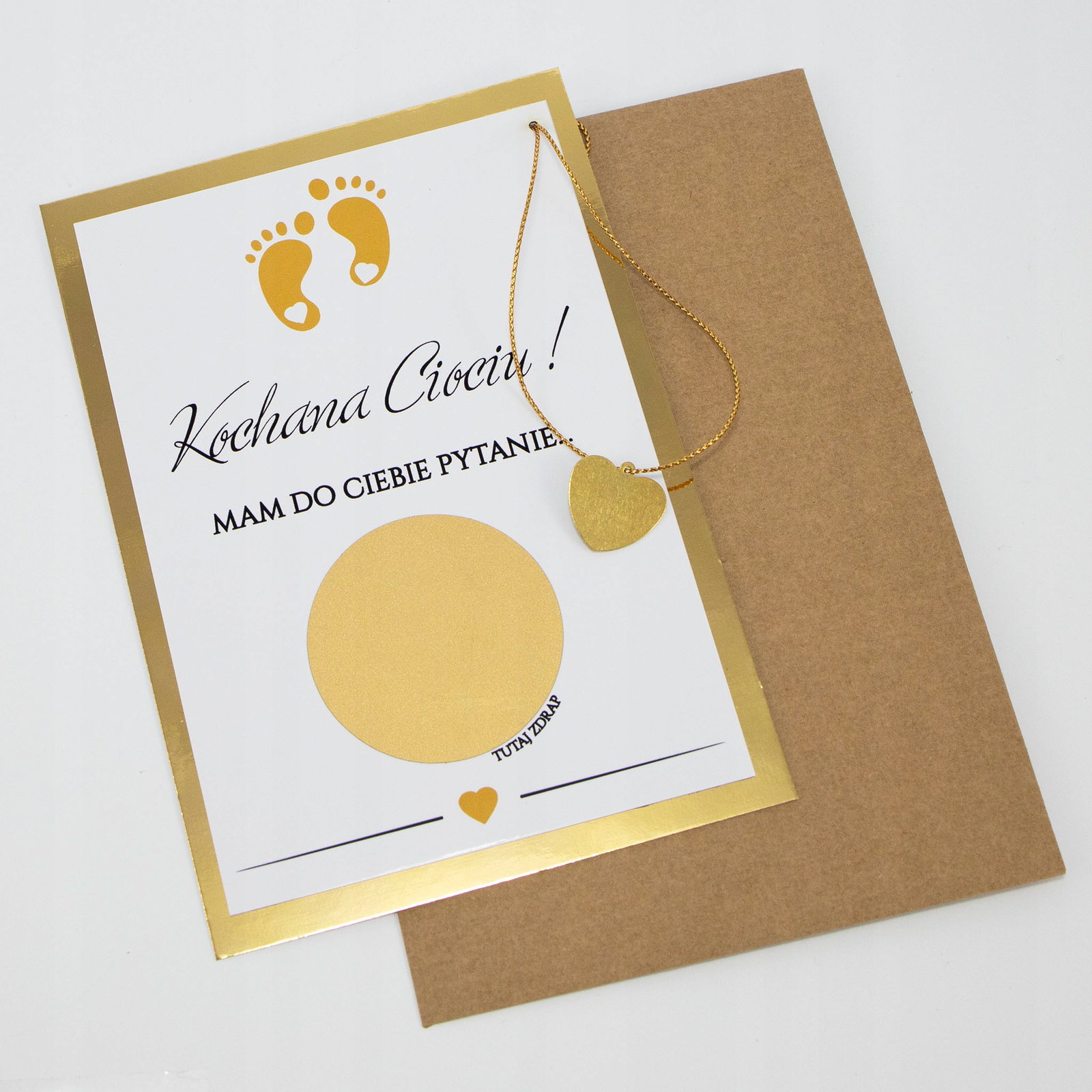 Oryginalny pomysł na zapytanie się bliskiej osoby o zostanie Matką Chrzestną. Do kartki dołączone jest urocze małe złote serduszko do zdrapywania. Pod złotą zdrapką ukryte jest pytanie: "Czy zostaniesz moim Ojcem Chrzestnym?".