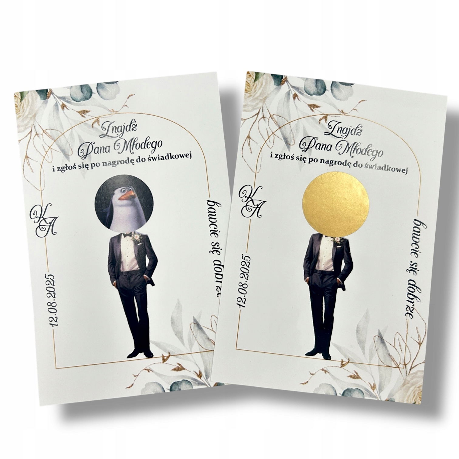 Każdy z gości otrzymuje zdrapkę. Pod warstwą zdrapki znajduje się twarz postaci – wśród nich tylko jedna przedstawia prawdziwego Pana Młodego!