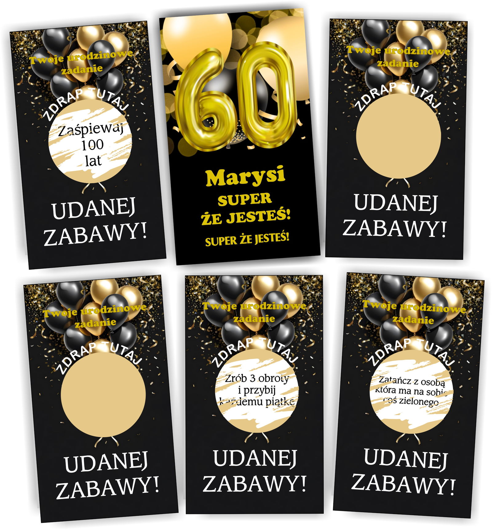 Każda 60-tka i inna okazja to wyjątkowe urodziny, ale Twoja impreza będzie oryginalna! Dlaczego? Dzięki tym zdrapkom ze śmiesznymi zadaniami! To fantastyczne urozmaicenie imprezy, gwarantują niezapomniane wrażenia.