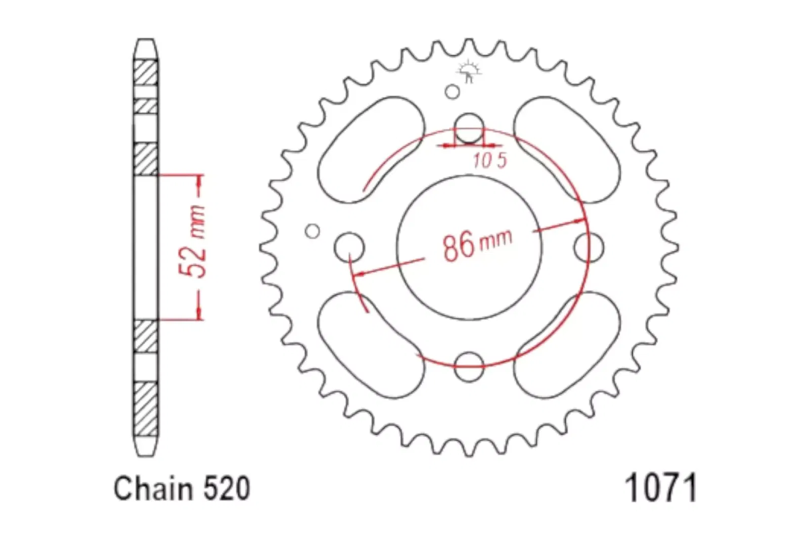 UWAGA ZDJĘCIE PODGLĄDOWE – Zębatka w kolorze stalowym, Zębatka tył stalowa JT , 30z rozmiar 520 - JTR1071.30