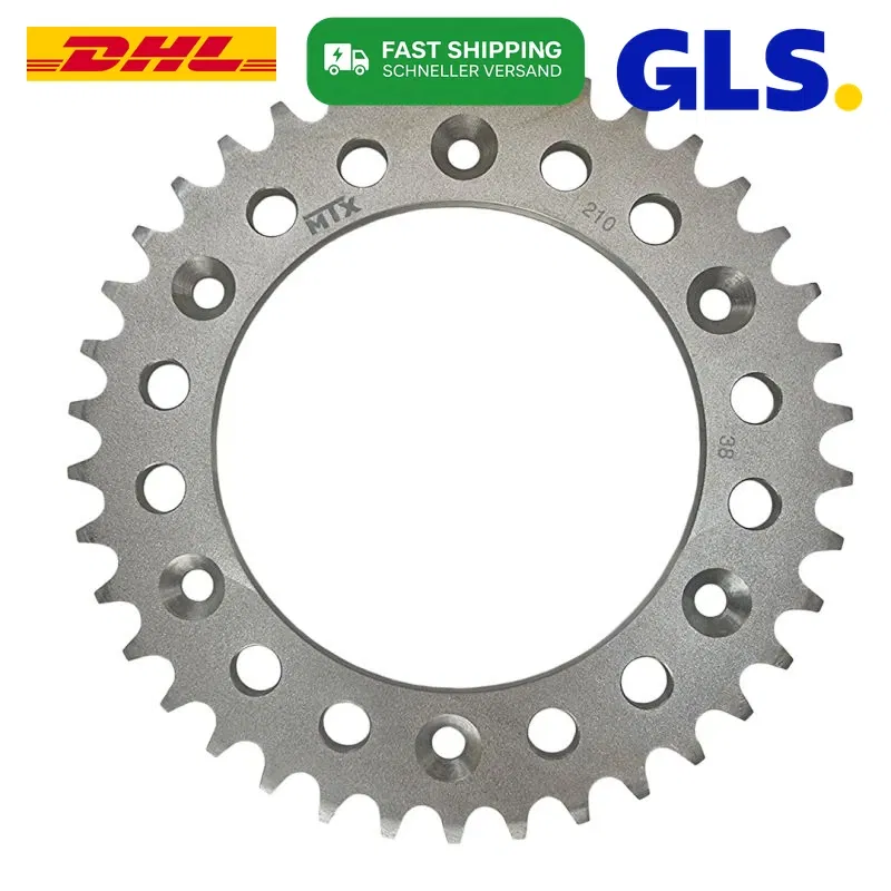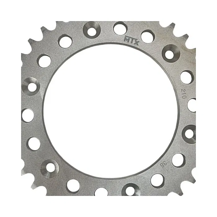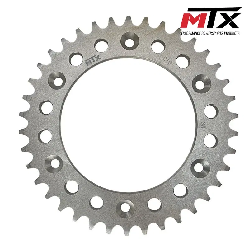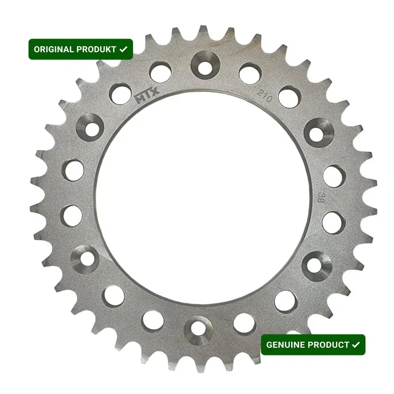 Zębatka tylna MTX PARTS o 38 zębach, przeznaczona do współpracy z łańcuchem o rozmiarze 520. Wykonana z wysokiej jakości stali, zapewnia trwałość i niezawodność w trudnych warunkach eksploatacji, gwarantując optymalne przeniesienie napędu.