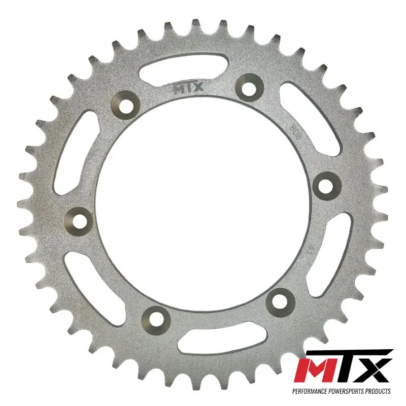 Tylna zębatka napędowa MTX o 41 zębach, przeznaczona do łańcucha o rozmiarze 520. Wykonana z wysokiej jakości stali, zapewnia trwałość i niezawodność w wymagających warunkach eksploatacji. Jest to kluczowy element układu napędowego, pozwalający na optymalizację przełożenia w motocyklach terenowych i enduro.