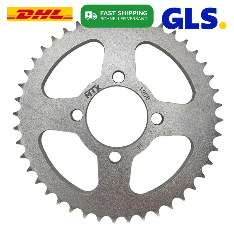 Zębatka tylna MTX PARTS o 44 zębach, przeznaczona do współpracy z łańcuchem o rozmiarze 428. Jest to wysokiej jakości zamiennik, zaprojektowany w celu zapewnienia optymalnego przeniesienia napędu i trwałości.