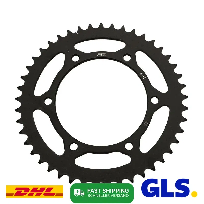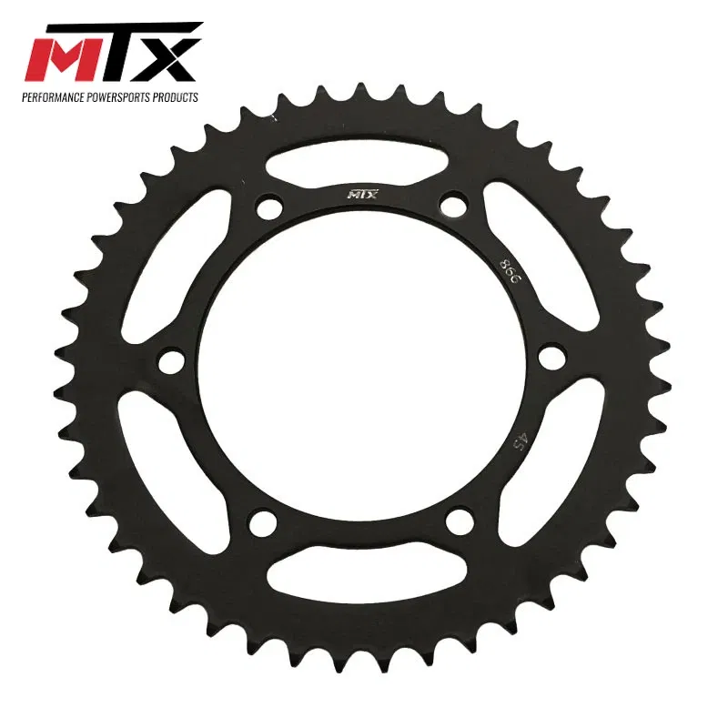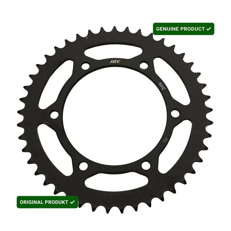 Zębatka tylna MTX o 45 zębach, przeznaczona do napędu motocyklowego z łańcuchem o podziałce 520. Wykonana z wysokiej jakości materiałów, zapewnia trwałość i precyzyjne przeniesienie napędu. Jest to kluczowy element układu napędowego, wpływający na osiągi i bezpieczeństwo.