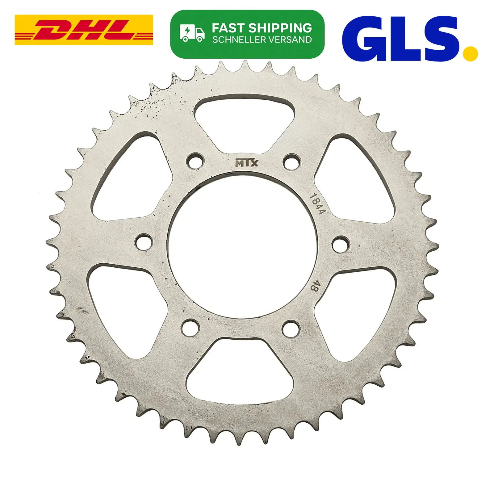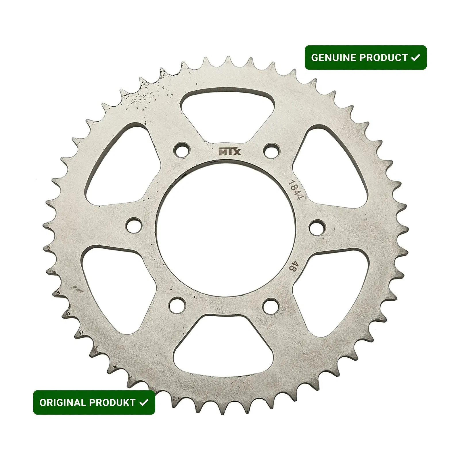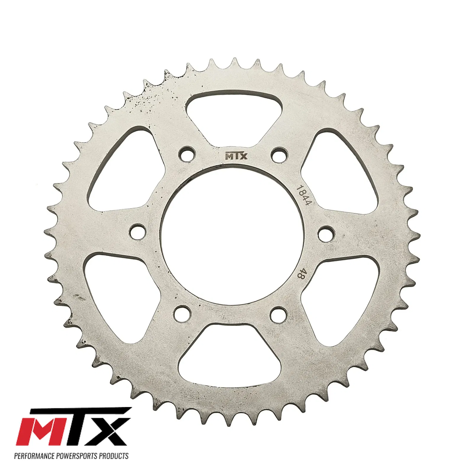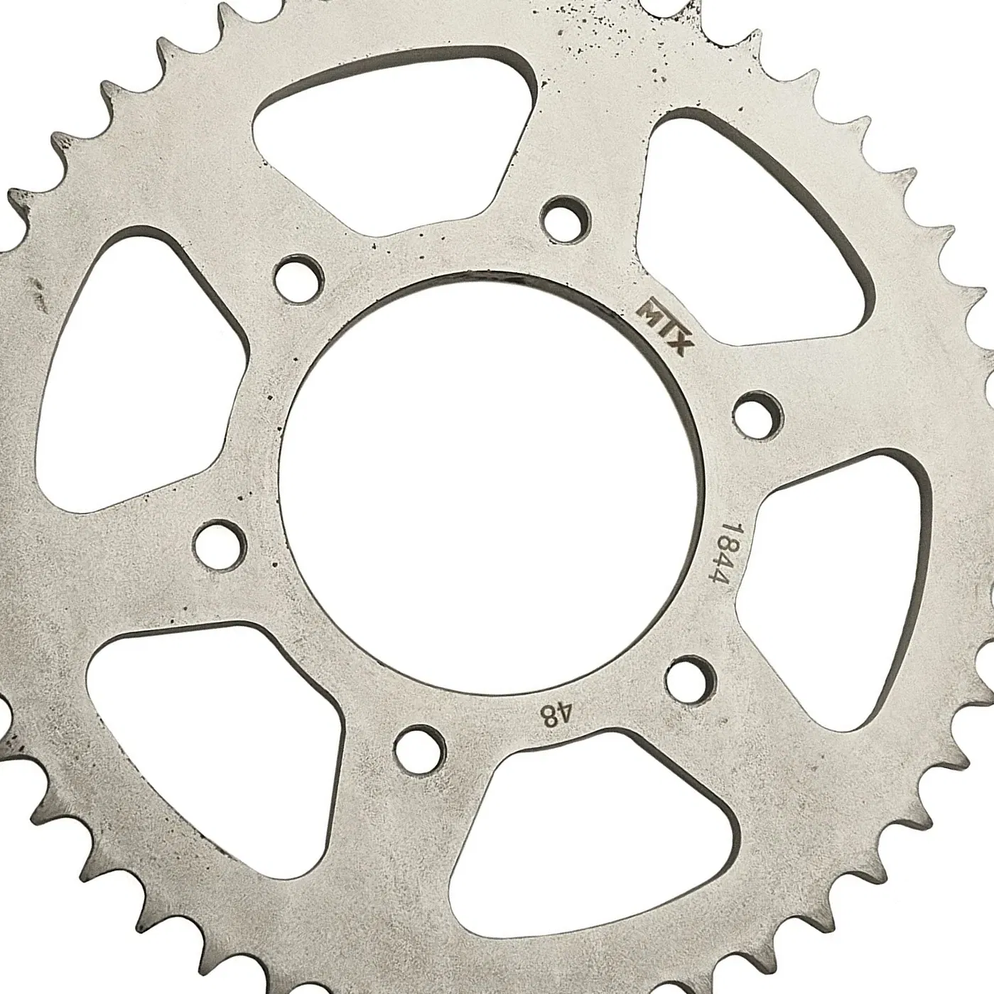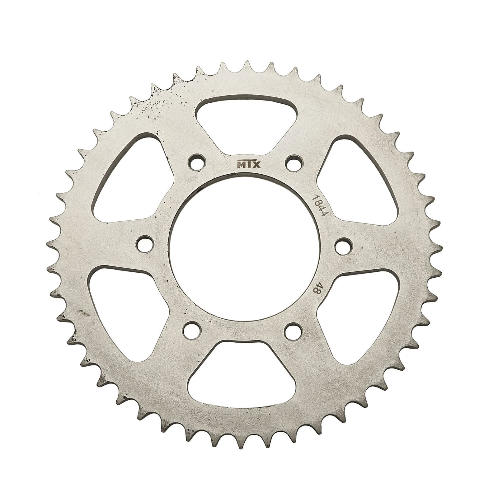 Zębatka tylna MTX o 48 zębach, przeznaczona do współpracy z łańcuchem o rozmiarze 428. Jest to wysokiej jakości zamiennik, zapewniający precyzyjne przeniesienie napędu i trwałość, zaprojektowany zgodnie ze specyfikacją producenta.