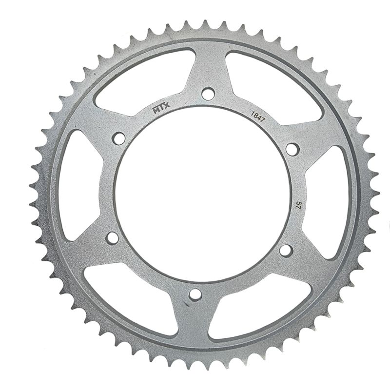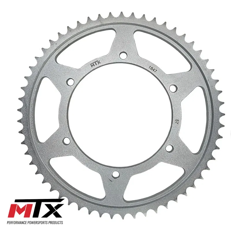 Zębatka tylna MTX o 57 zębach, przeznaczona do współpracy z łańcuchem o podziałce 428. Wykonana z wysokiej jakości stali, zapewnia trwałość i niezawodność w układzie napędowym motocykla, gwarantując optymalne przeniesienie mocy.