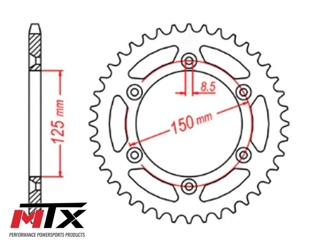Zębatka tylna MTX PARTS o 46 zębach, przeznaczona do łańcucha o rozmiarze 520. Wykonana z wysokiej jakości stali, zapewnia trwałość i niezawodność w trudnych warunkach terenowych. Jest to kluczowy element układu napędowego, wpływający na charakterystykę przeniesienia mocy.