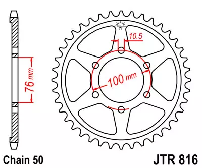 UWAGA ZDJĘCIE PODGLĄDOWE – Zębatka w kolorze stalowym, Zębatka tył stalowa JT , 49z rozmiar 530 - JTR816.49