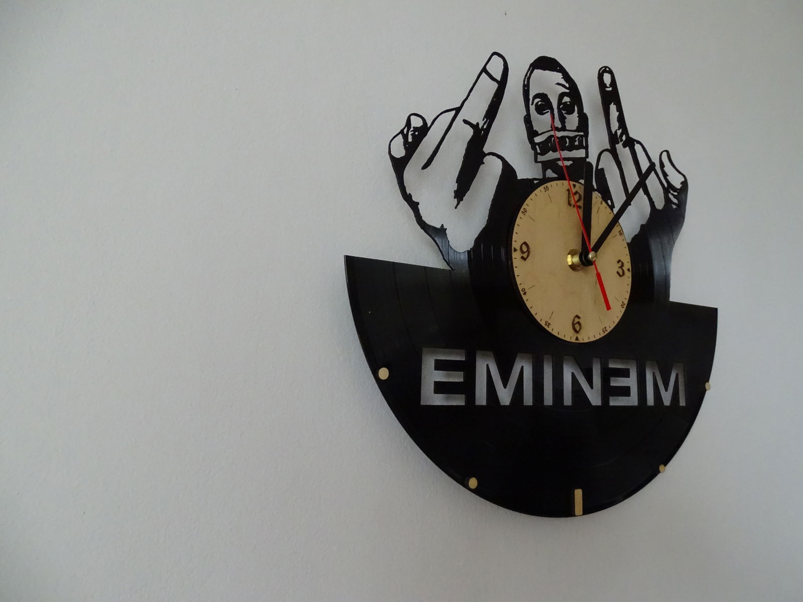 Stylowy wygląd: Połączenie klasycznej płyty winylowej i motywu EMINEM sprawia, że zegar idealnie wpasuje się w nowoczesne oraz industrialne wnętrza.