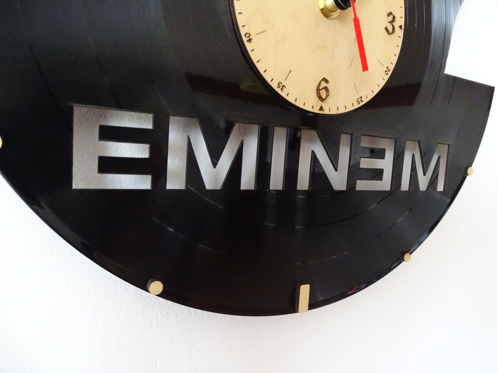 Unikalne zegary ścienne wykonane z winylowych płyt, ozdobione wizerunkiem legendarnej grupy EMINEM. Każdy zegar jest ręcznie robiony, co sprawia, że jest niepowtarzalny i stanowi doskonały element dekoracyjny dla miłośników rocka i kultury muzycznej.