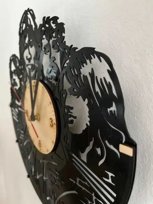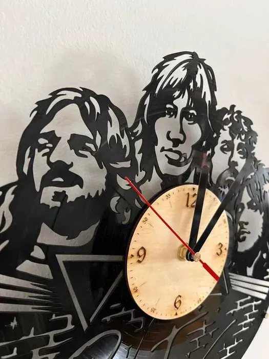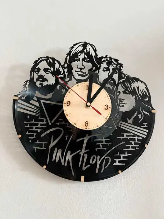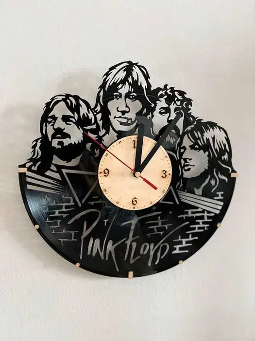Unikalne zegary ścienne wykonane z winylowych płyt, ozdobione wizerunkiem legendarnej grupy PINK FLOYD. Każdy zegar jest ręcznie robiony, co sprawia, że jest niepowtarzalny i stanowi doskonały element dekoracyjny dla miłośników rocka i kultury muzycznej.