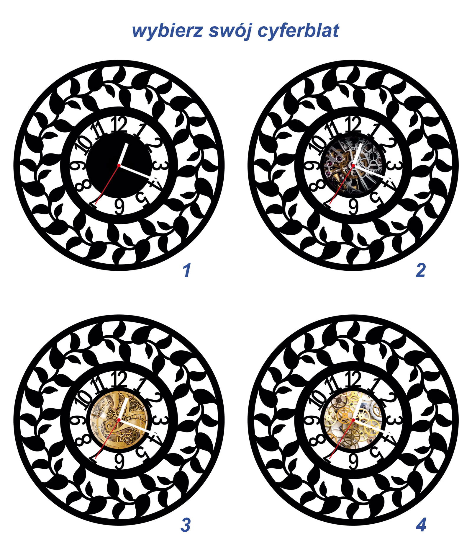 - Jeżeli nie będzie takiej informacji wysyłamy zegar ze zdjęcia głównego z cyferblatem nr 1 i białymi wskazówkami.