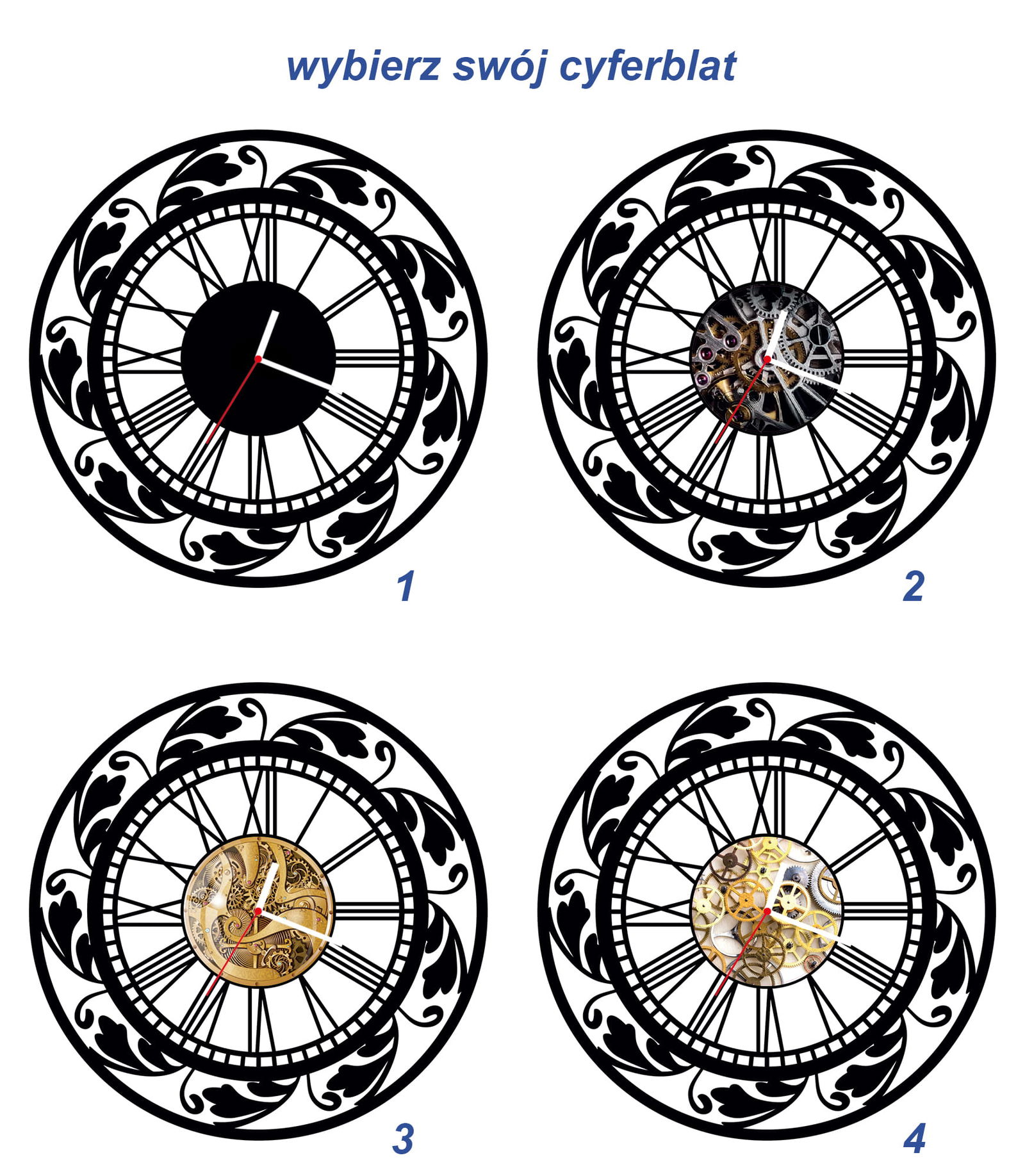 - Jeżeli nie będzie takiej informacji wysyłamy zegar ze zdjęcia głównego z cyferblatem nr 1 i białymi wskazówkami.