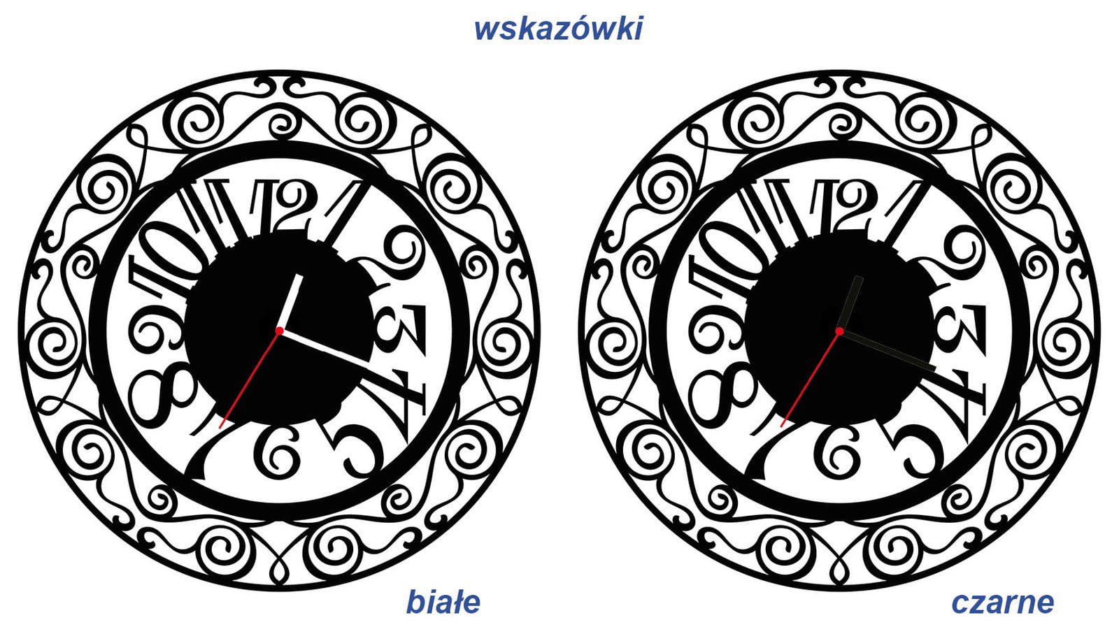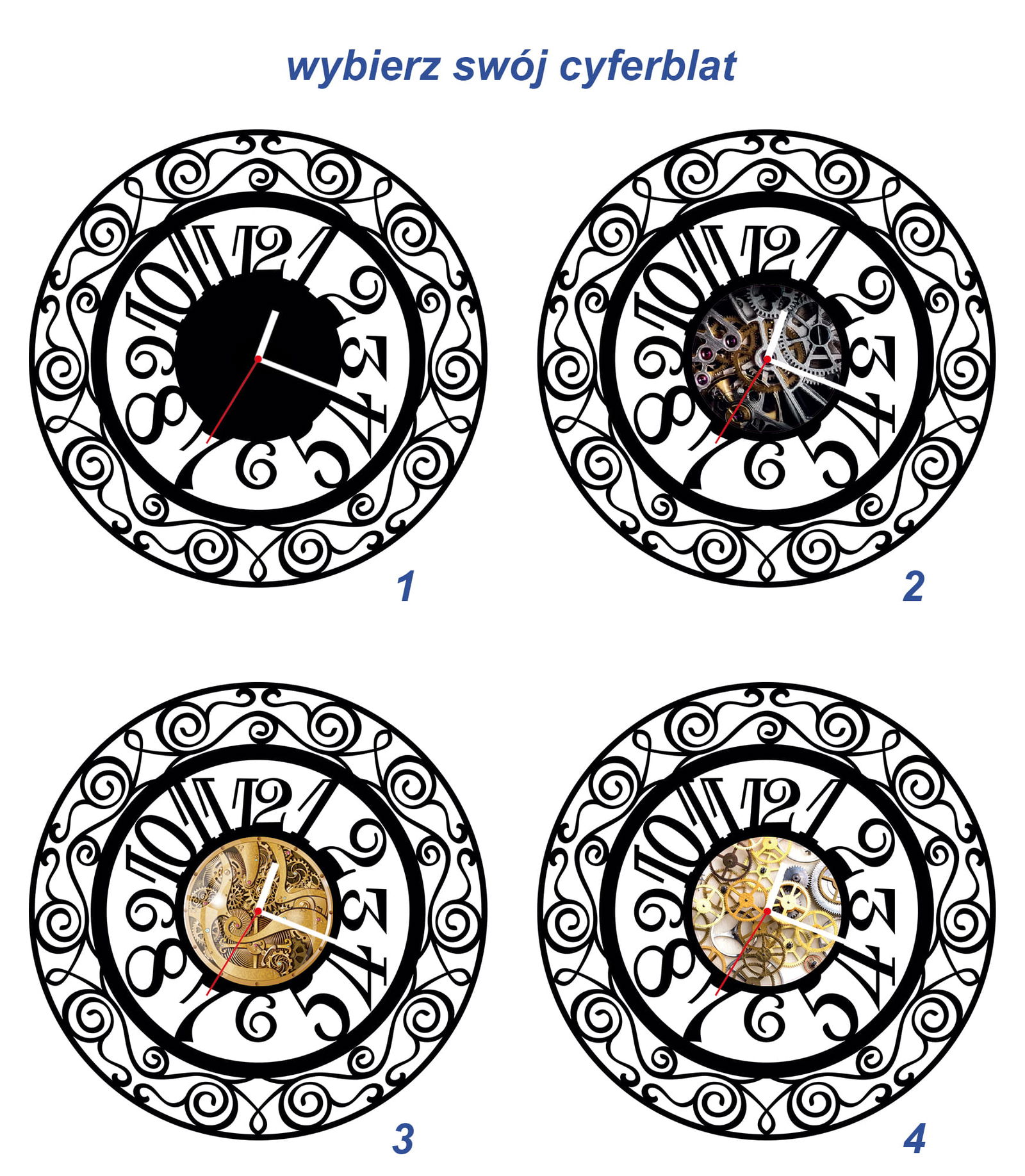 - Jeżeli nie będzie takiej informacji wysyłamy zegar ze zdjęcia głównego z cyferblatem nr 1 i białymi wskazówkami.