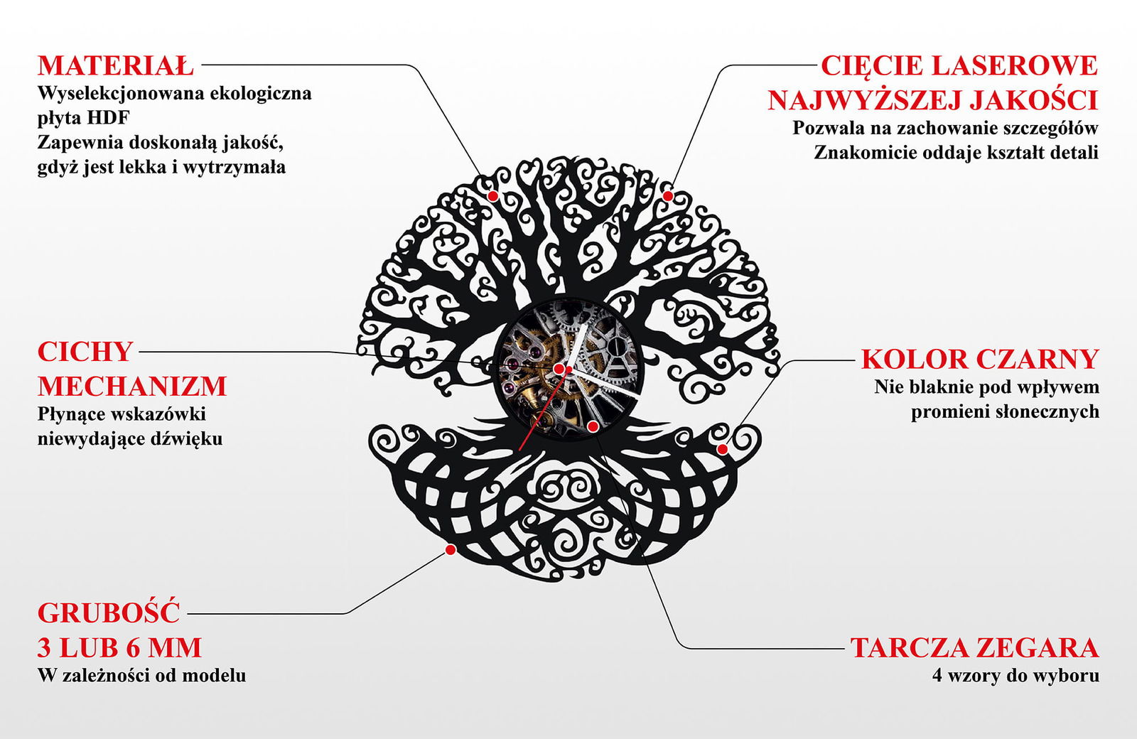 Piękny i oryginalny zegar tworzony jest przez nowoczesny laser co skutkuje wysoką jakość ciętych krawędzi.