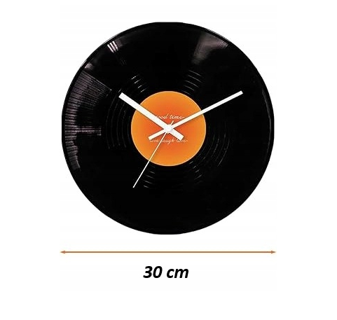 Zegar ścienny inspirowany wyglądem płyty winylowej to oryginalny element wystroju, który łączy w sobie ponadczasowy styl retro z nowoczesnym minimalizmem. Klasyczna czarna tarcza z kontrastowym, pomarańczowym środkiem oraz wyraziste białe wskazówki tworzą spójną, estetyczną całość. Dzięki temu zegar pełni nie tylko funkcję praktyczną, ale również dekoracyjną, nadając pomieszczeniu niepowtarzalny charakter. Cichy mechanizm gwarantuje komfort użytkowania, a sam design sprawia, że zegar staje się efektownym akcentem na każdej ścianie.