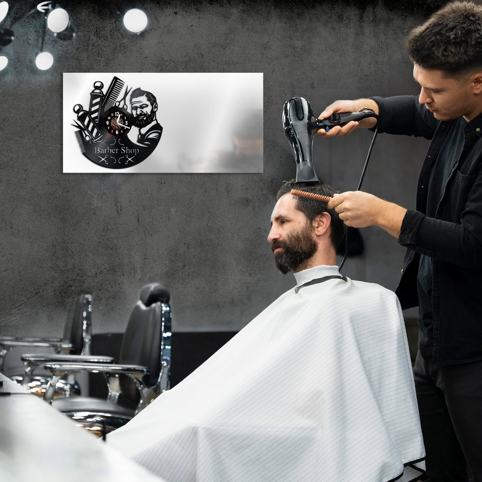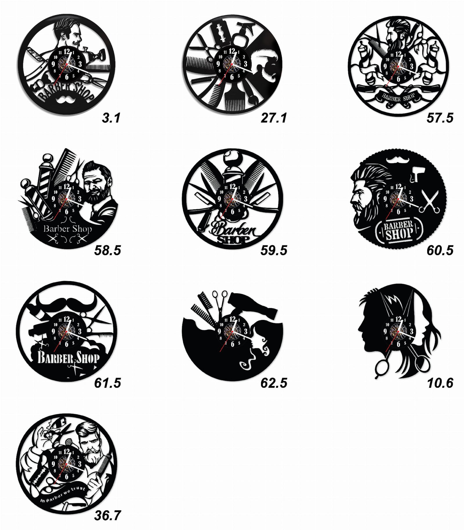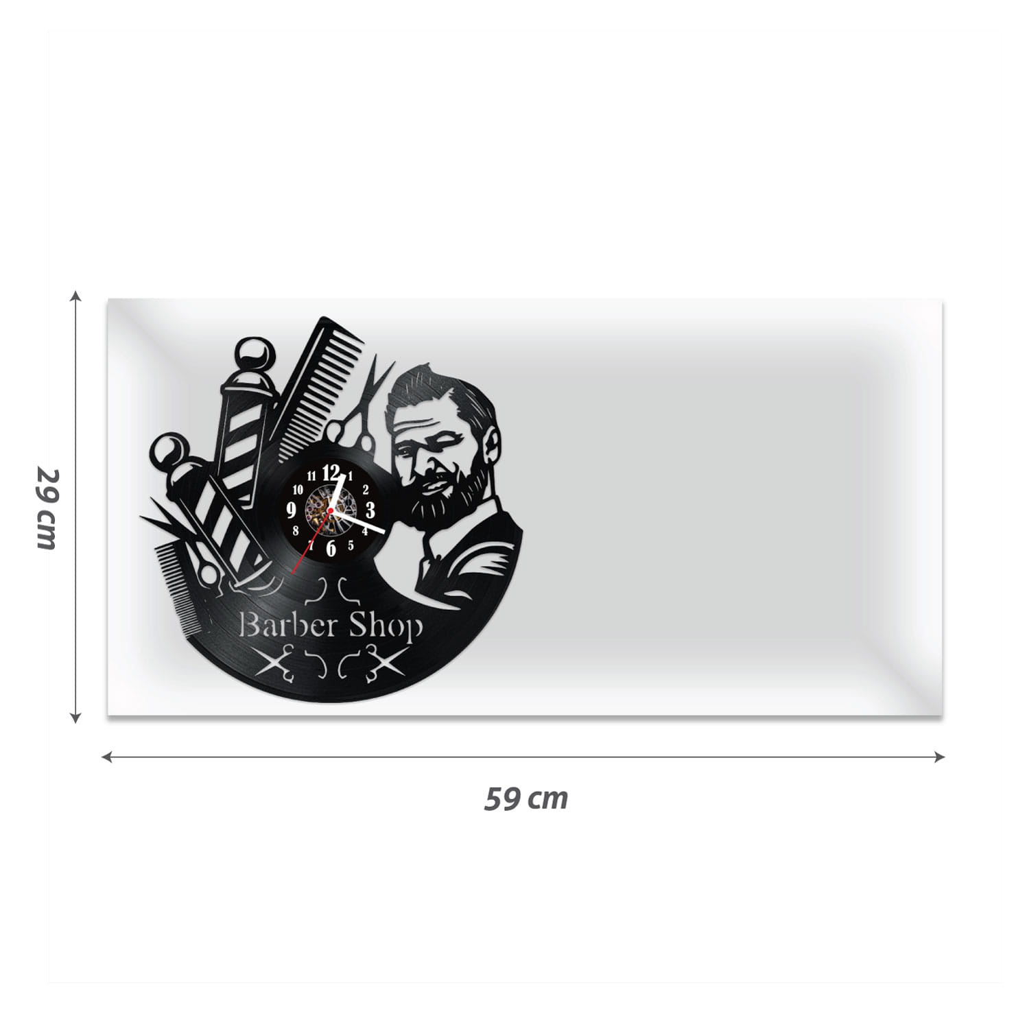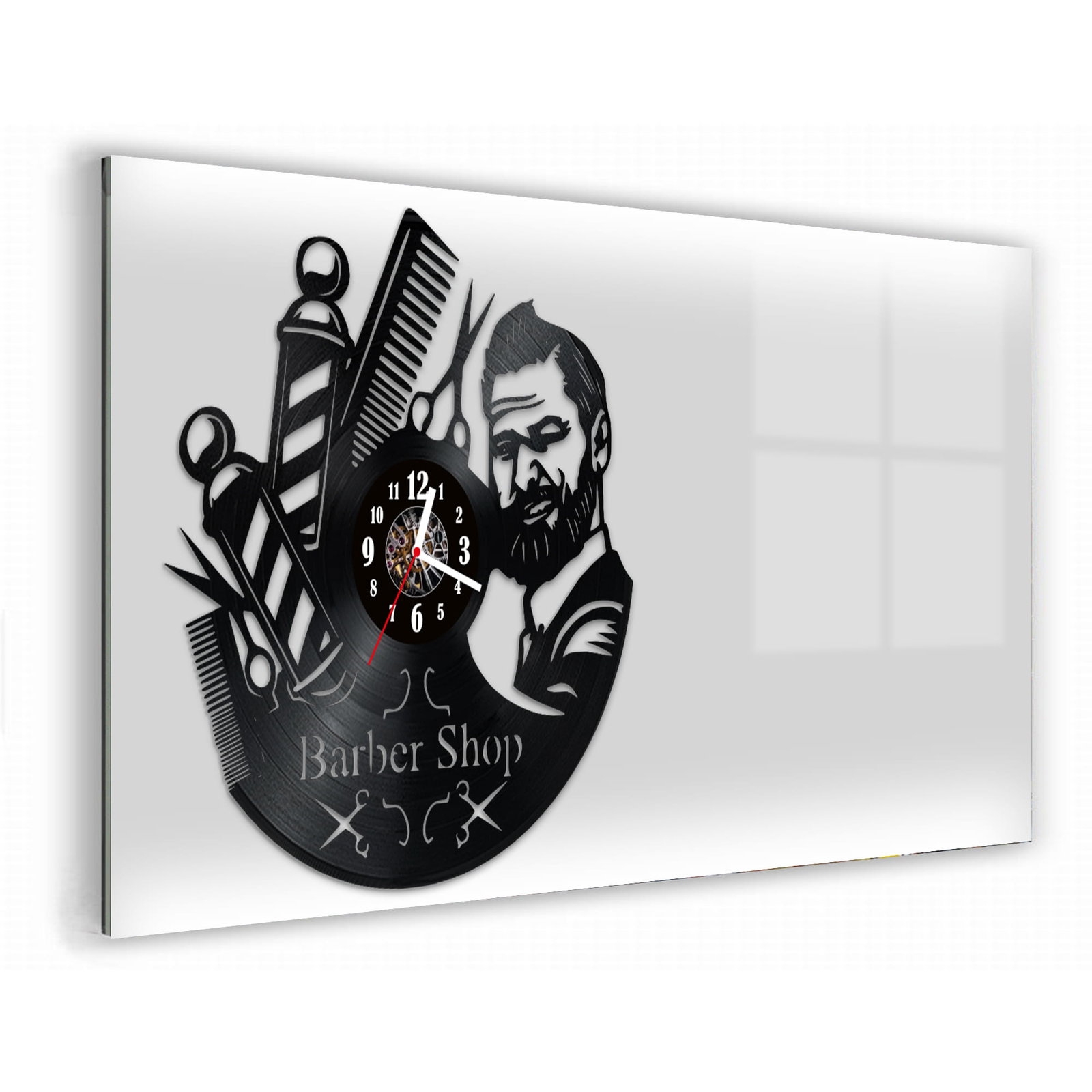 Zegar Ścienny z płyty winylowej na lustrze BARBER SHOP 10 wzorów 59x29cm