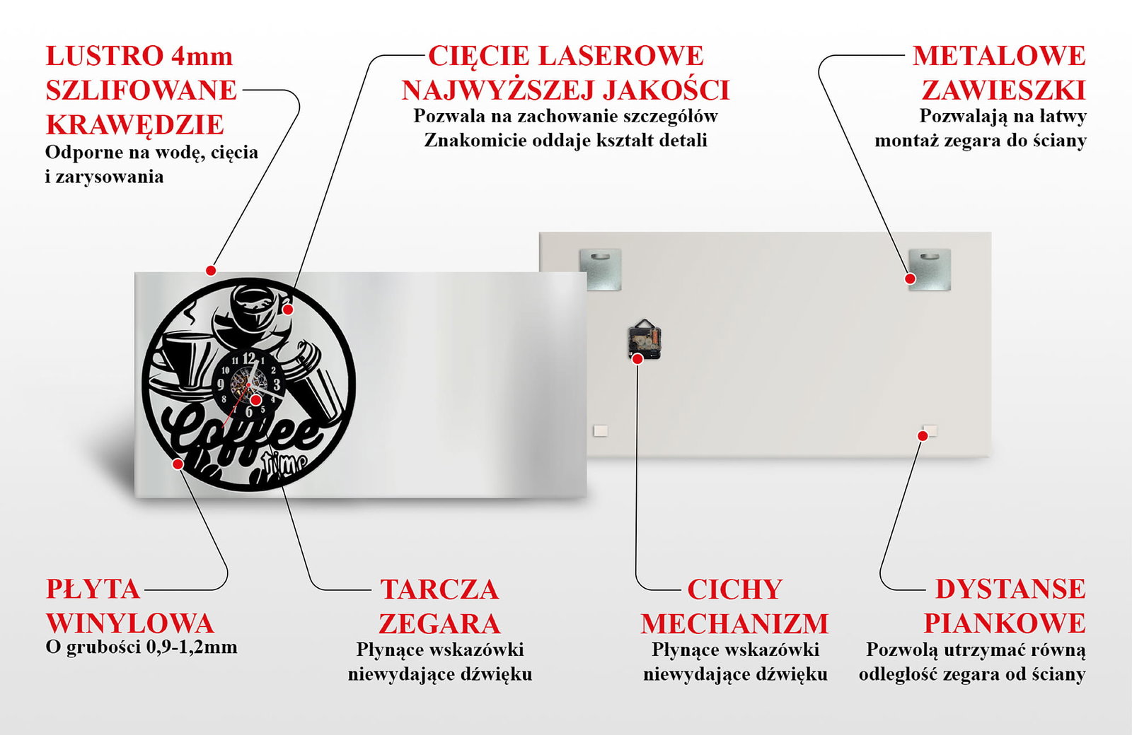 - Proszę pamiętać, że kupujesz Zegar Ścienny z płyty winylowej na lustrze.