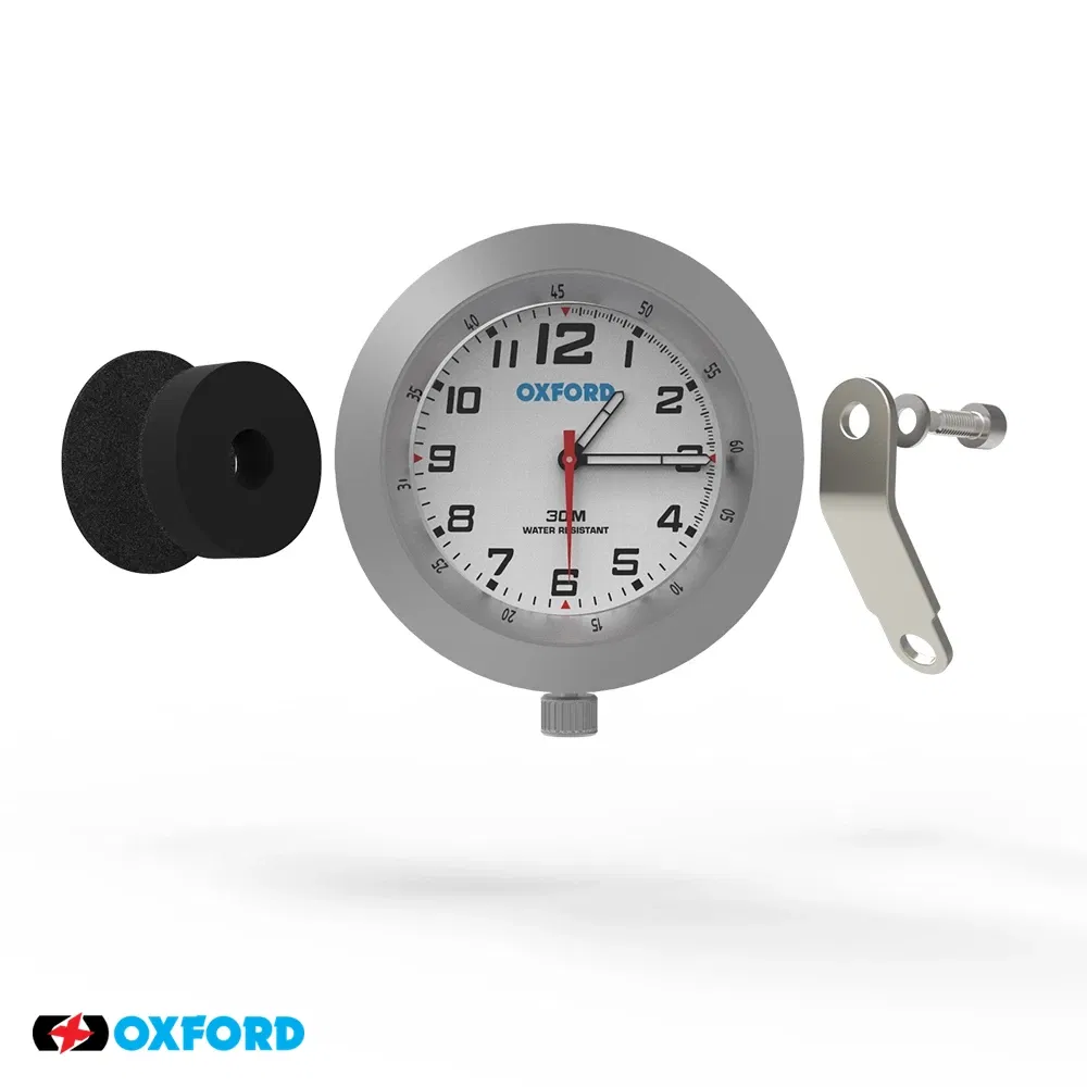 Zegar analogowy OXFORD OX560 to elegancki i praktyczny dodatek do motocykla, umożliwiający łatwe monitorowanie czasu podczas jazdy. Wykonany z wytrzymałych materiałów, charakteryzuje się srebrnym wykończeniem i jest odporny na warunki atmosferyczne. Przeznaczony do uniwersalnego montażu na kierownicy lub desce rozdzielczej.