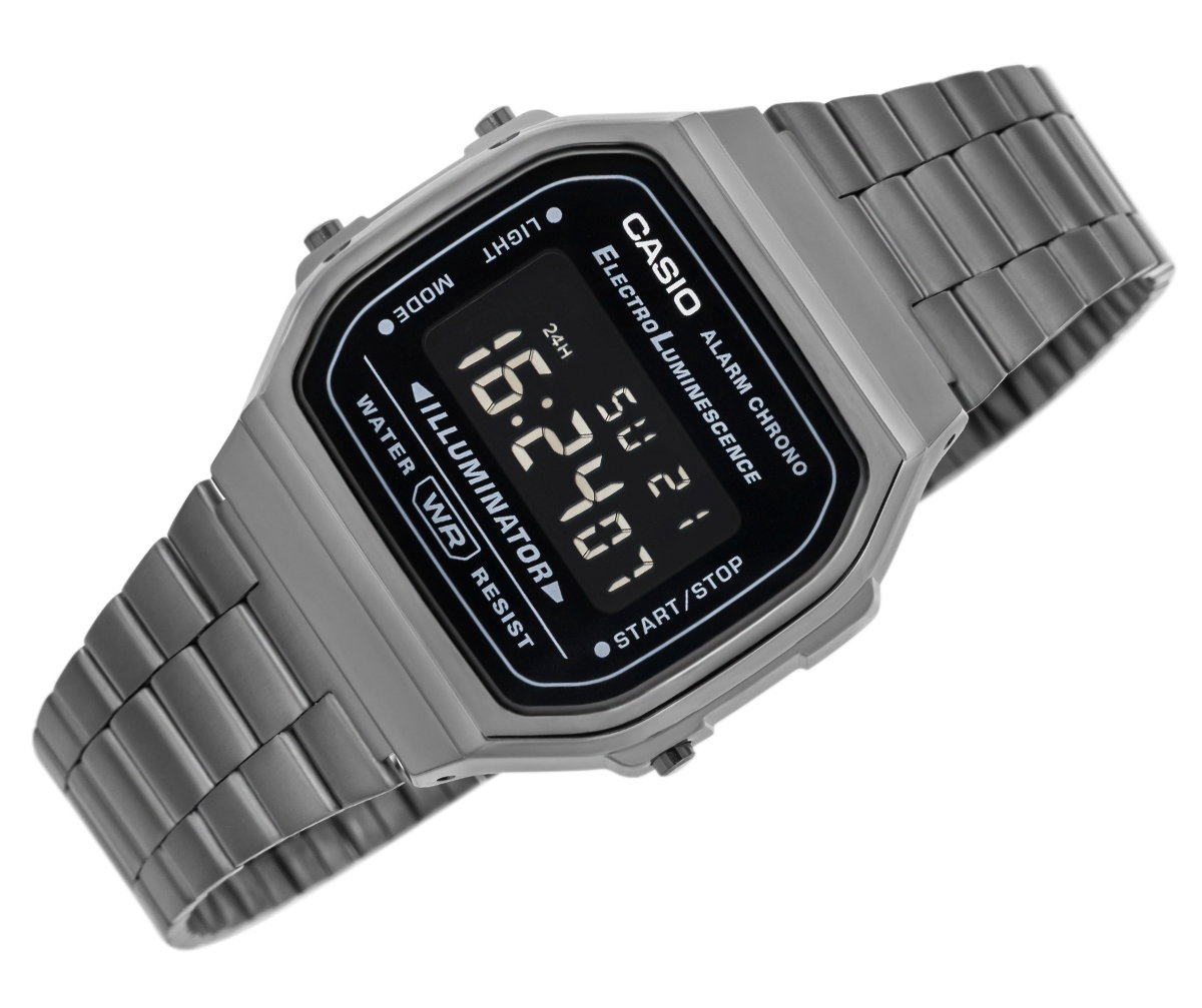 Cyfrowy zegarek dla osób, które cenią ponadczasowy styl i funkcjonalność w codziennym wydaniu. Jego kompaktowa, lekko geometryczna koperta w połączeniu z klasyczną metalową bransoletą nawiązuje do estetyki retro, nadając całości charakteru, który pasuje zarówno do codziennych, jak i bardziej uporządkowanych stylizacji. Model z linii Casio Vintage wyróżnia się czytelnym, cyfrowym wyświetlaczem i smukłą formą, dzięki czemu świetnie prezentuje się na nadgarstku i pozostaje wygodny w noszeniu.