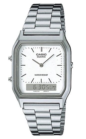 Casio AQ-230 to zegarek, który łączy prestiż, funkcjonalność i ponadczasową estetykę. Idealny wybór dla tych, którzy cenią styl vintage, ale nie chcą rezygnować z nowoczesnych rozwiązań. Casio AQ-230 to nie tylko piękny design, ale również doskonała precyzja działania. Podwójny wyświetlacz analogowo-cyfrowy pozwala na kontrolowanie czasu w dwóch strefach jednocześnie, a dodatkowe funkcje, takie jak alarm, stoper i kalendarz automatyczny, zwiększają jego praktyczność.