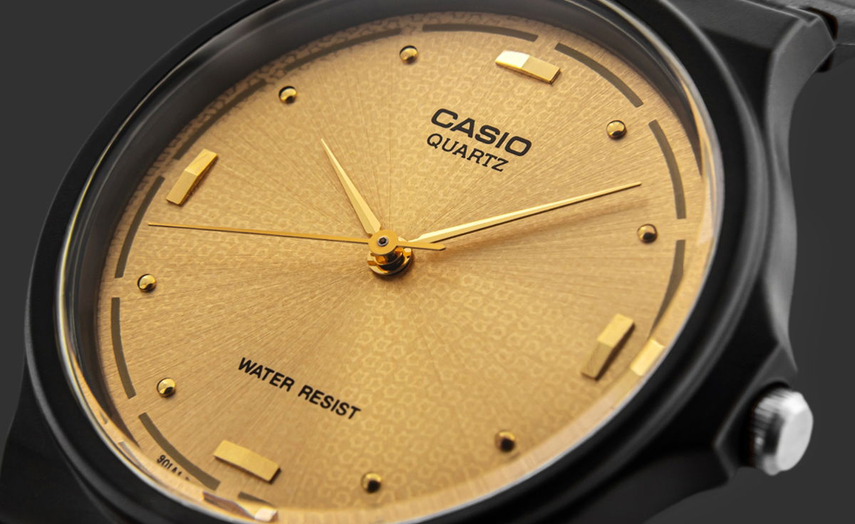Zegarek Damski Casio MQ-76-9ALDF + BOX Odkryj połączenie klasycznej prostoty i nowoczesnego designu, które sprawia, że zegarek doskonale wpisuje się w elegancki, ale także codzienny styl. Jego smukła konstrukcja i kompaktowa tarcza sprawiają, że doskonale dopasowuje się do nadgarstka, a matowy, giętki pasek z żywicy zapewnia niezrównany komfort noszenia – miękki, elastyczny i odporny na codzienne wyzwania. Złote indeksy w postaci prostokątów i subtelnych punktów harmonijnie komponują się z ciepłym odcieniem złotych wskazówek, tworząc spójną i wyrafinowaną estetykę. Waga to zaledwie 20 gram!