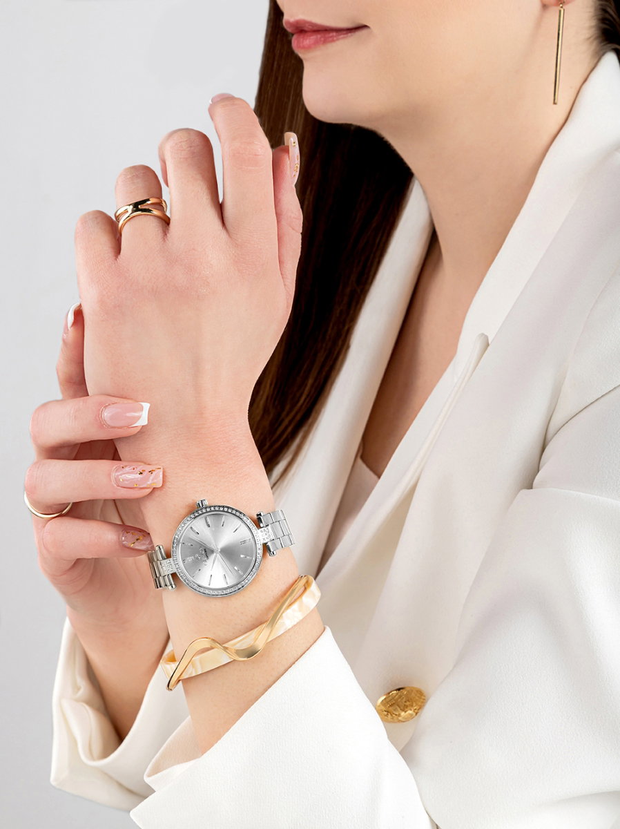 Mocna bransoleta wykonana z perfekcyjnie stali szlachetnej to element, który nie sposób przeoczyć. Każde ogniwo zostało zaprojektowane tak, by doskonale układać się na nadgarstku, zapewniając jednocześnie maksymalny komfort. Nieprzesadzona, doskonała w dotyku, wyrafinowana i solidna - jest jak stalowa obręcz, która mocno trzyma zegarek na Twoim nadgarstku, przypominając Ci o stabilności. Każde ogniwo jest starannie dopracowane, dzięki temu zegarek doskonale pasuje zarówno do codziennych, jak i formalnych stylizacji. Precyzyjnie wykonane zapięcie dopełnia ten mocny, kobiecy charakter zegarka.