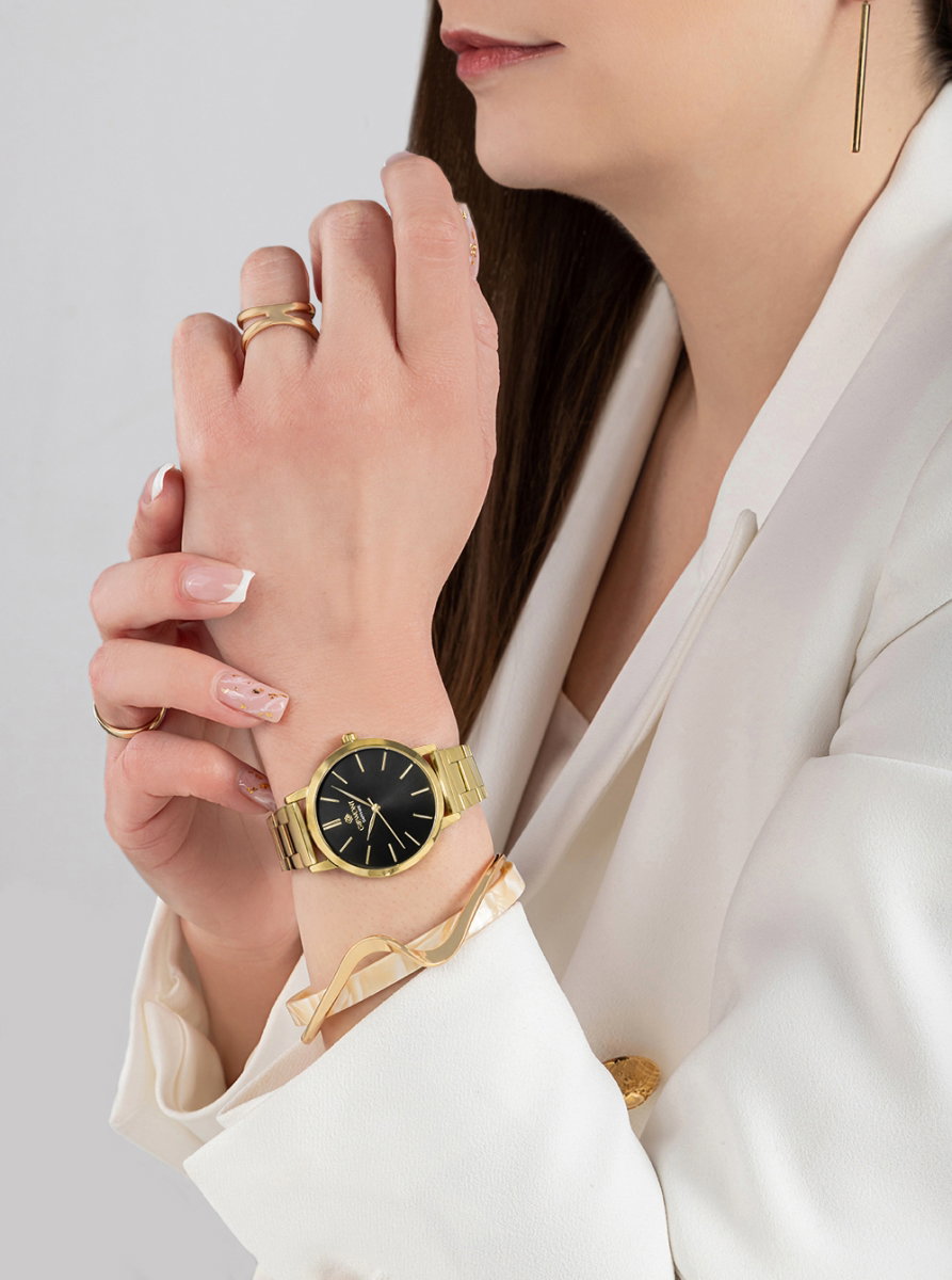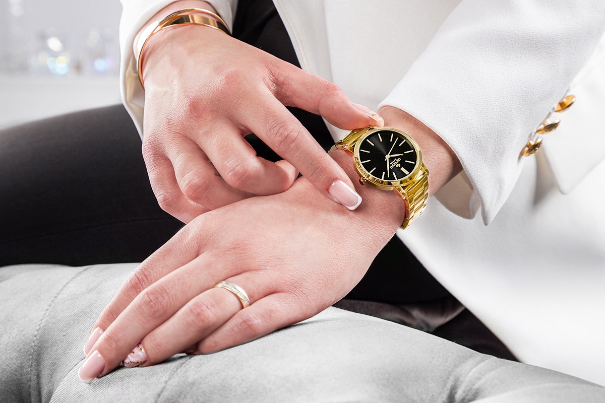 Mocna bransoleta wykonana z perfekcyjnie stali szlachetnej to element, który nie sposób przeoczyć. Każde ogniwo zostało zaprojektowane tak, by doskonale układać się na nadgarstku, zapewniając jednocześnie maksymalny komfort. Nieprzesadzona, doskonała w dotyku, wyrafinowana i solidna - jest jak stalowa obręcz, która mocno trzyma zegarek na Twoim nadgarstku, przypominając Ci o stabilności. Każde ogniwo jest starannie dopracowane, dzięki temu zegarek doskonale pasuje zarówno do codziennych, jak i formalnych stylizacji. Precyzyjnie wykonane zapięcie dopełnia ten mocny, kobiecy charakter zegarka.