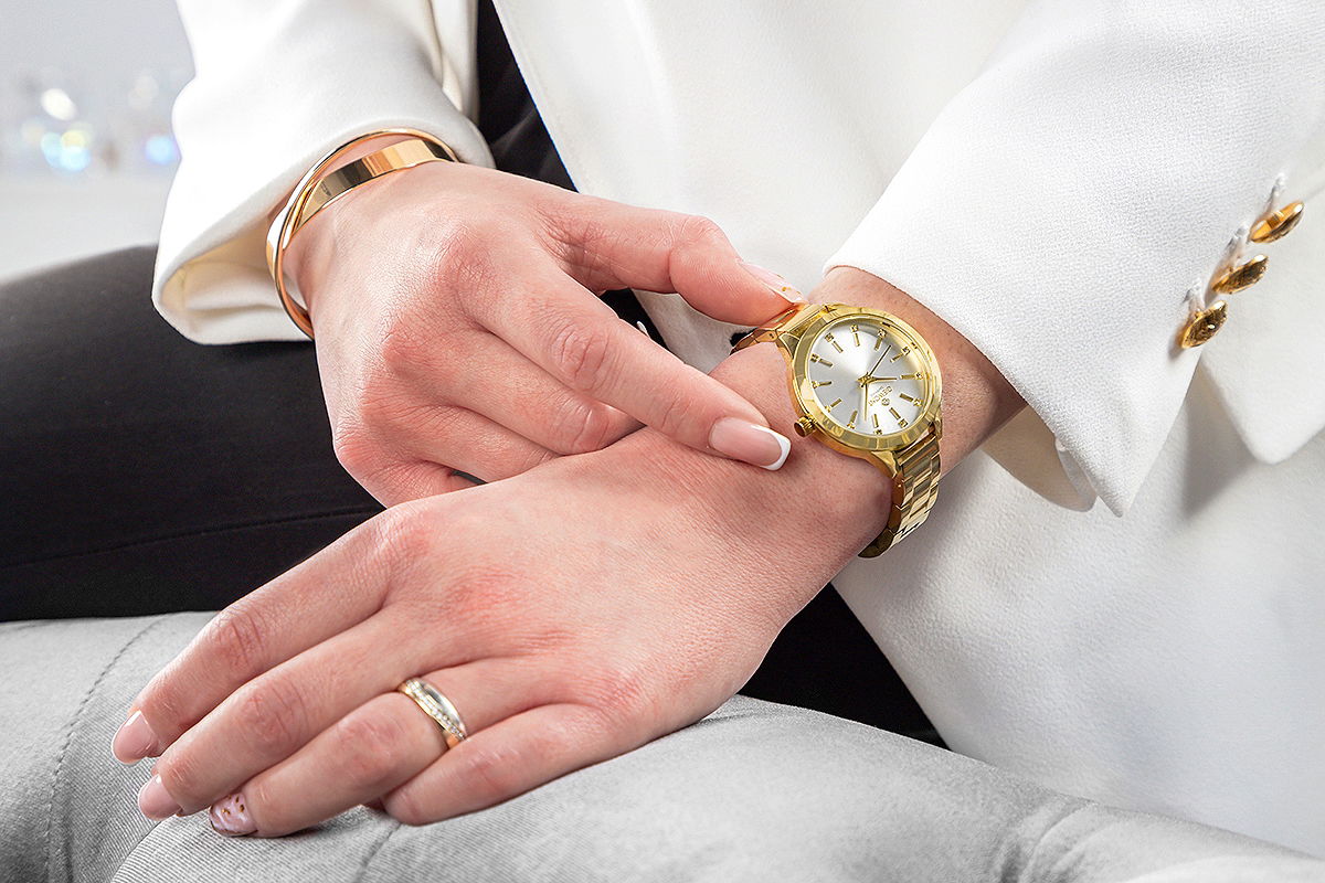 Mocna bransoleta wykonana z perfekcyjnie stali szlachetnej to element, który nie sposób przeoczyć. Każde ogniwo zostało zaprojektowane tak, by doskonale układać się na nadgarstku, zapewniając jednocześnie maksymalny komfort. Nieprzesadzona, doskonała w dotyku, wyrafinowana i solidna - jest jak stalowa obręcz, która mocno trzyma zegarek na Twoim nadgarstku, przypominając Ci o stabilności. Każde ogniwo jest starannie dopracowane, dzięki temu zegarek doskonale pasuje zarówno do codziennych, jak i formalnych stylizacji. Precyzyjnie wykonane zapięcie dopełnia ten mocny, kobiecy charakter zegarka.