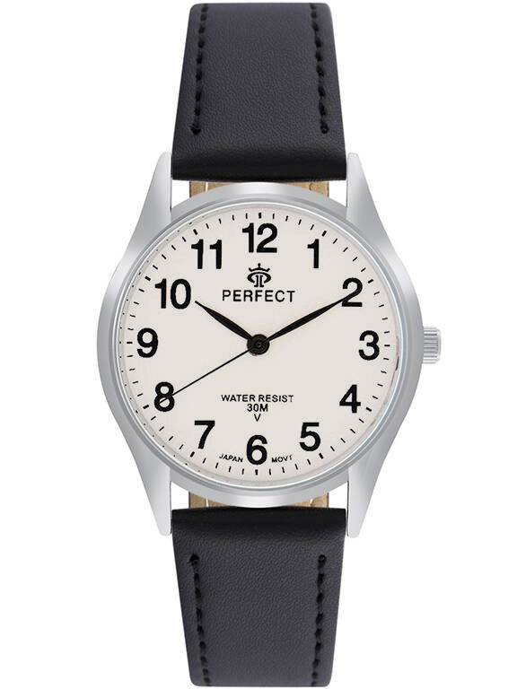 Marka: Perfect Mechanizm: Kwarcowy Tarcza: Analogowa Koperta: Wysokogatunkowa stal Szkiełko: Mineralne Pasek: Skóra naturalna Wodoszczelność: 3 ATM