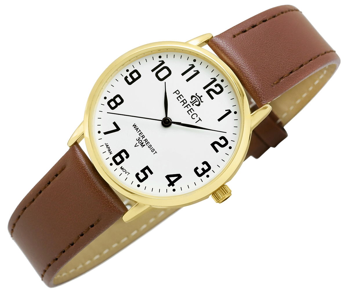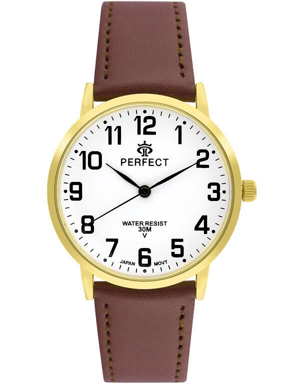 Marka: Perfect Mechanizm: Kwarcowy Tarcza: Analogowa Koperta: Wysokogatunkowa stal Szkiełko: Mineralne Pasek: Skóra naturalna Wodoszczelność: 3 ATM