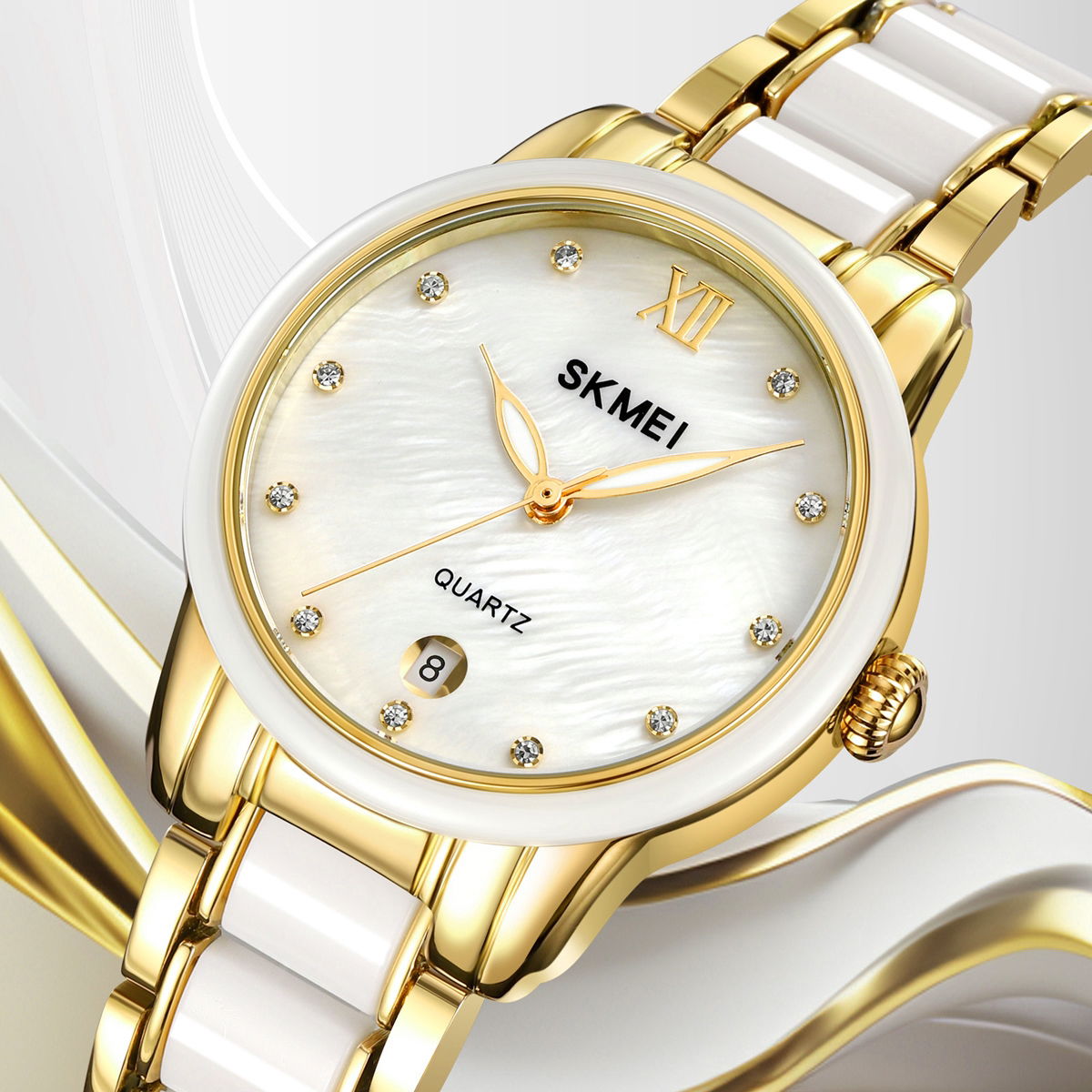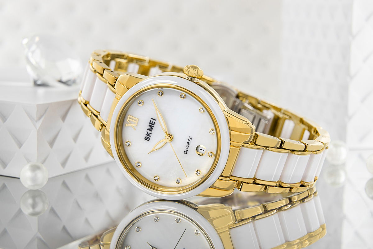 Zegarek Damski Skmei 1530GD + BOXZegarek damski Skmei 2175GD to elegancja, która pulsuje blaskiem i subtelnością. Jego złoto-biała bransoleta, wykonana z połączenia lśniącej stali i delikatnych, ceramicznych elementów, oplata nadgarstek niczym luksusowy klejnot, dodając szyku i wdzięku każdemu ruchowi.