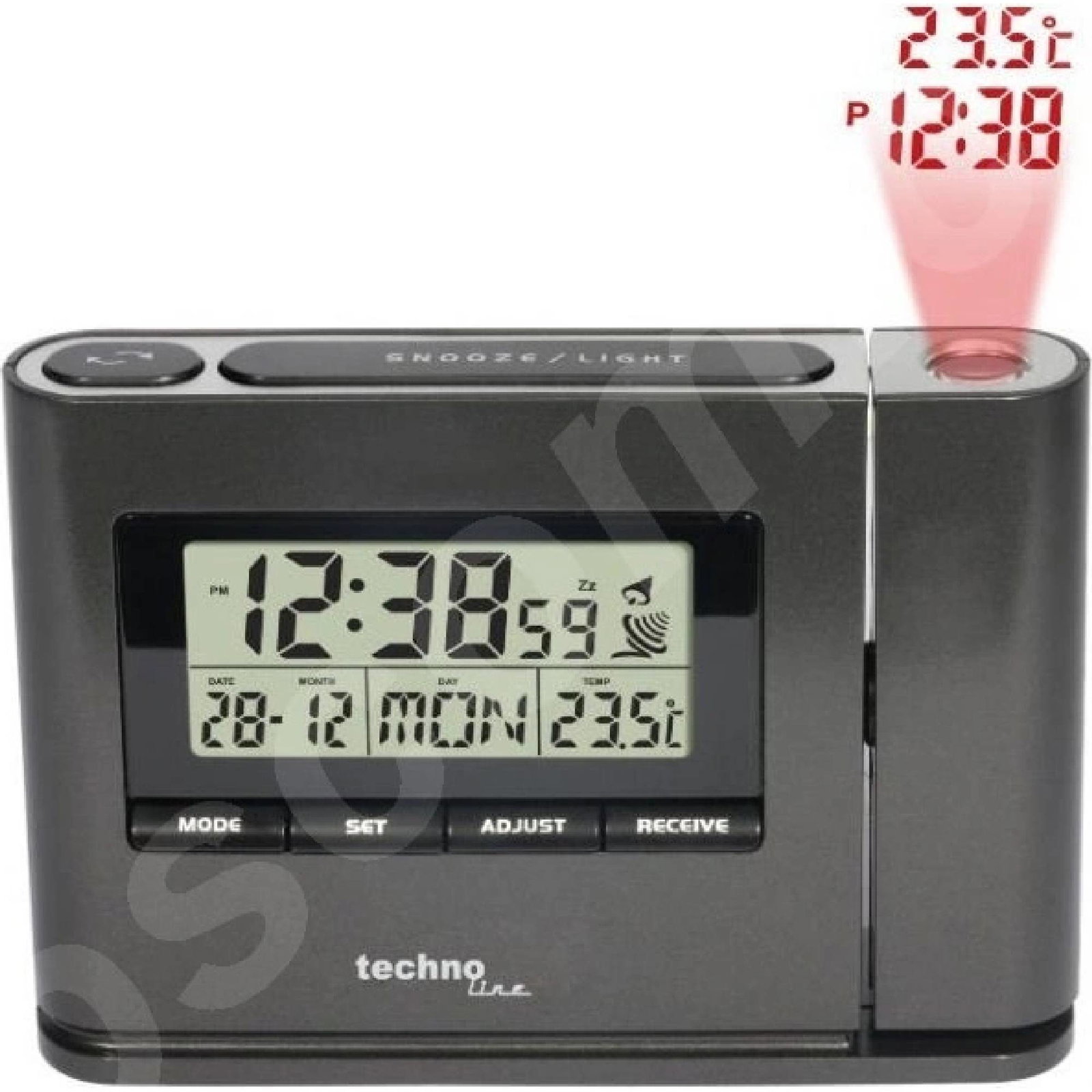 Budzik projekcyjny WT 519 Zegar sterowany radiowo, wskaźnikiem temperatury wewnętrznej i daty