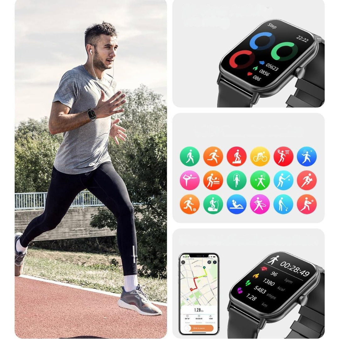 - Wielofunkcyjny: smartwatch wyposażony w 1,85-calowy ekran dotykowy, umożliwiający bieżące monitorowanie takich parametrów jak nasycenie krwi tlenem (SpO2), liczba kroków, tętno, spalone kalorie, jakość snu, pokonana odległość, zarządzanie stresem oraz przypomnienia o cyklu menstruacyjnym dla kobiet. Tracker fitness oferuje całodobowe śledzenie aktywności i celów zdrowotnych. Dzięki dostępności różnych personalizowanych tarcz zegarka, użytkownik może dostosować urządzenie do swoich indywidualnych preferencji.