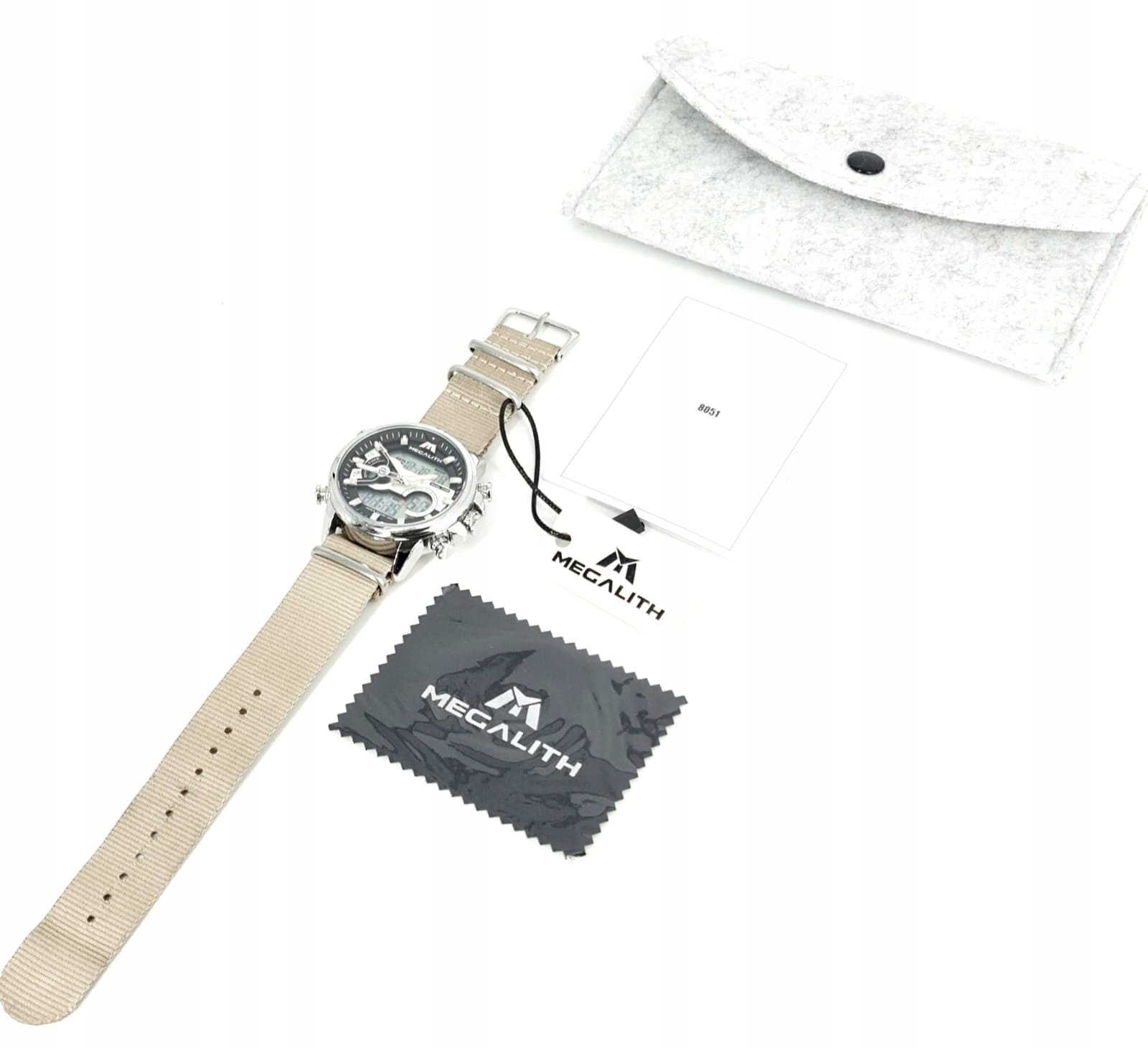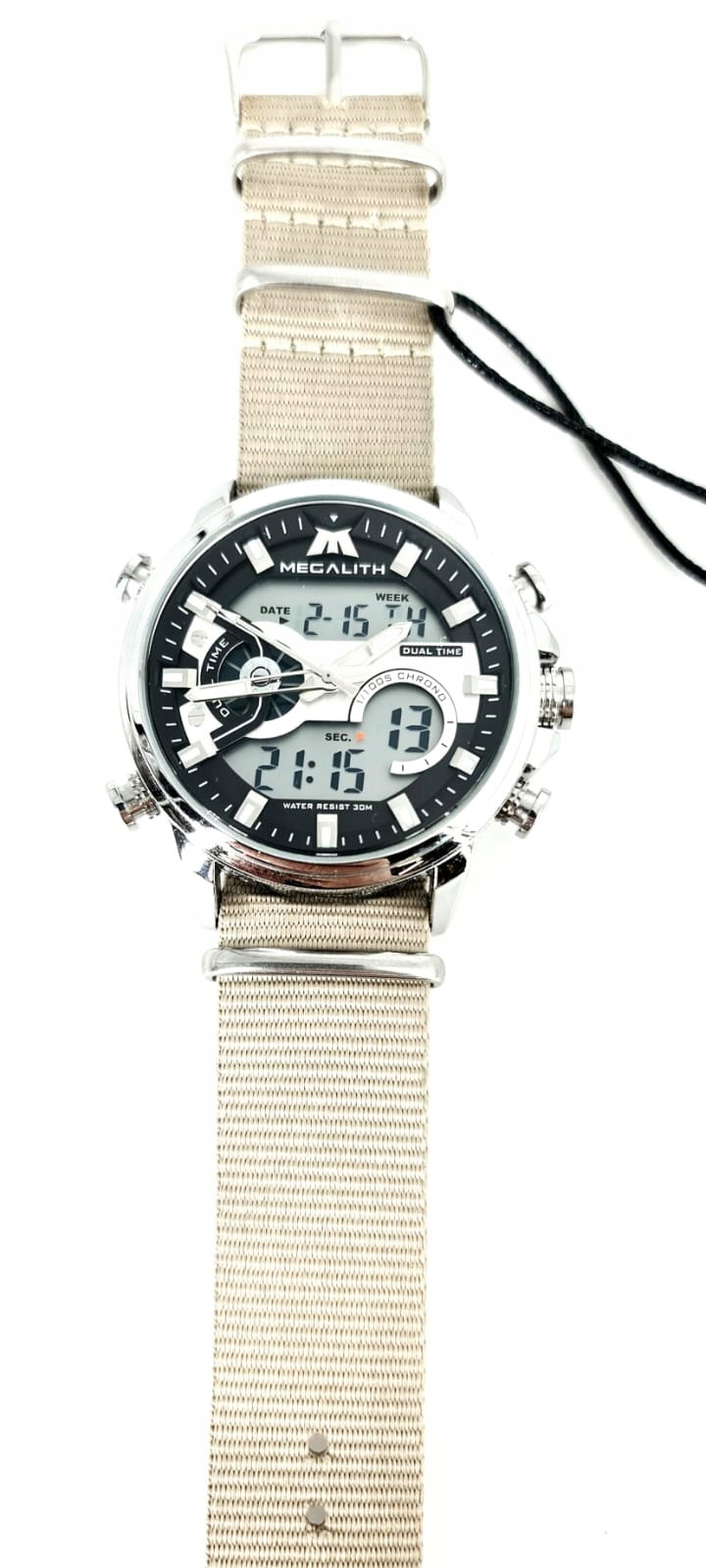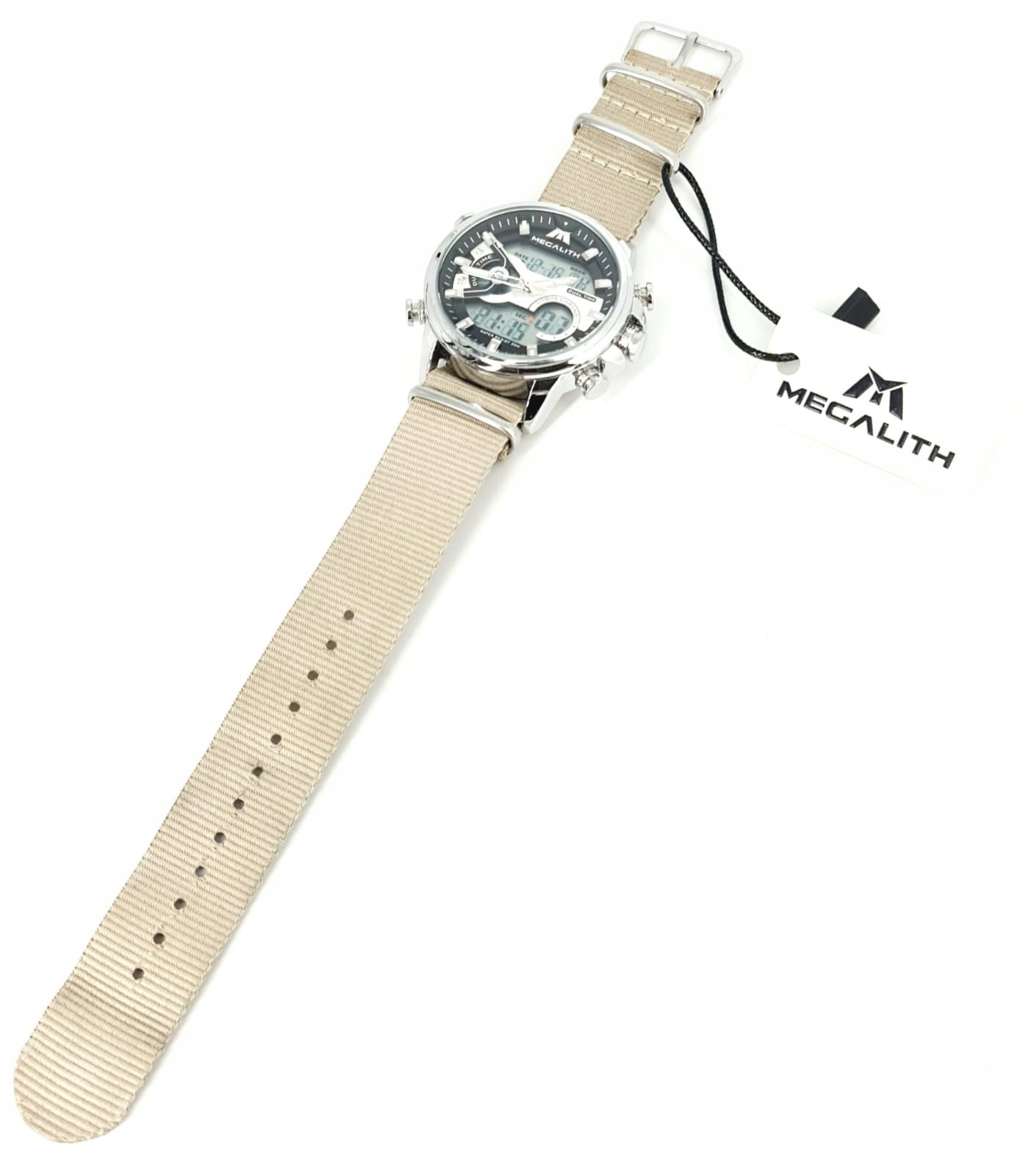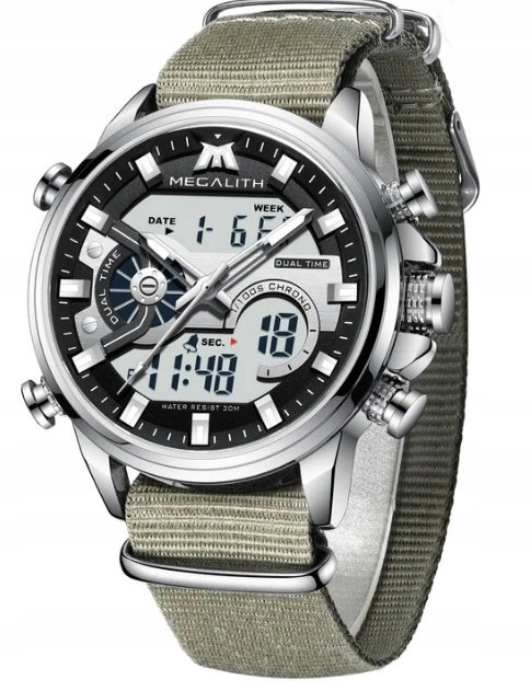 Męski zegarek Megalith 8276M z nylonowym paskiem, fajny wygląd okrągłej koperty i czarnej tarczy oraz purystyczna i przejrzysta linia zaprojektowanego cyfrowego zegarka idealnie się uzupełniają i gwarantują niesamowity wygląd.