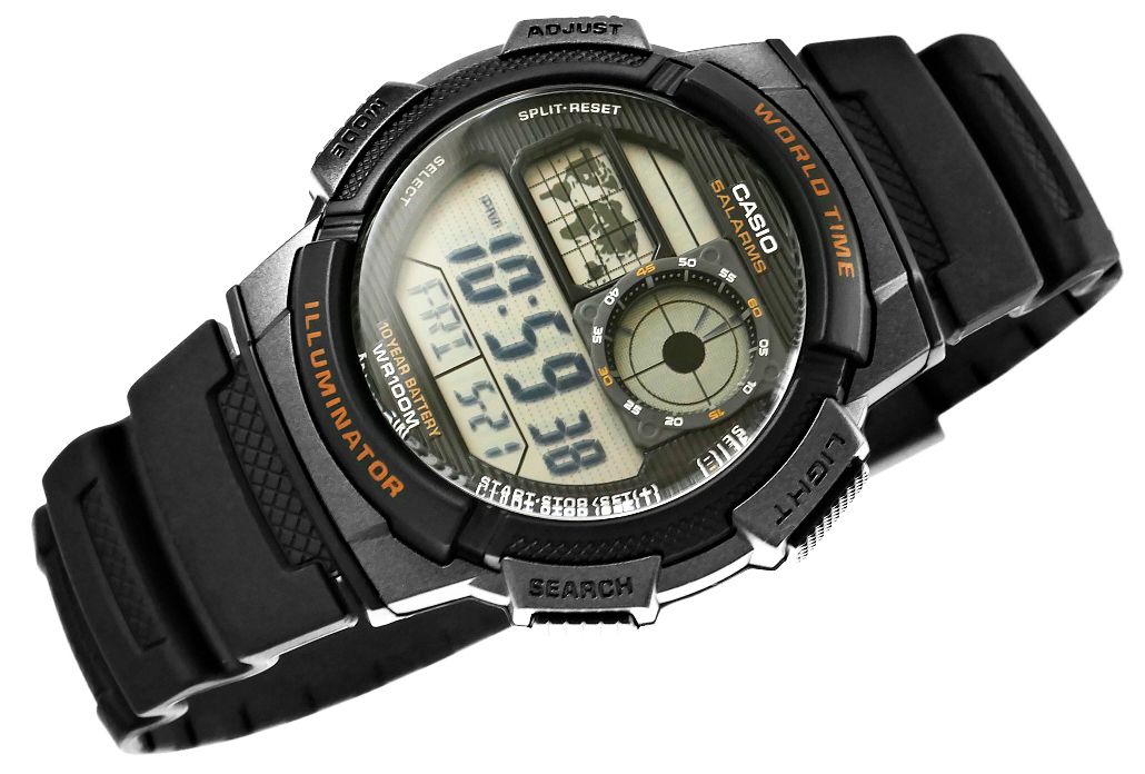 Tarcza: Kwarcowa. Stoper, Alarmx5, Budzik. Data. Podświetlenie - do podświetlenia tego zegarka użyto diody LED, która stonowanym i jasnym światłem wystarczająco naświetli nam tarczę