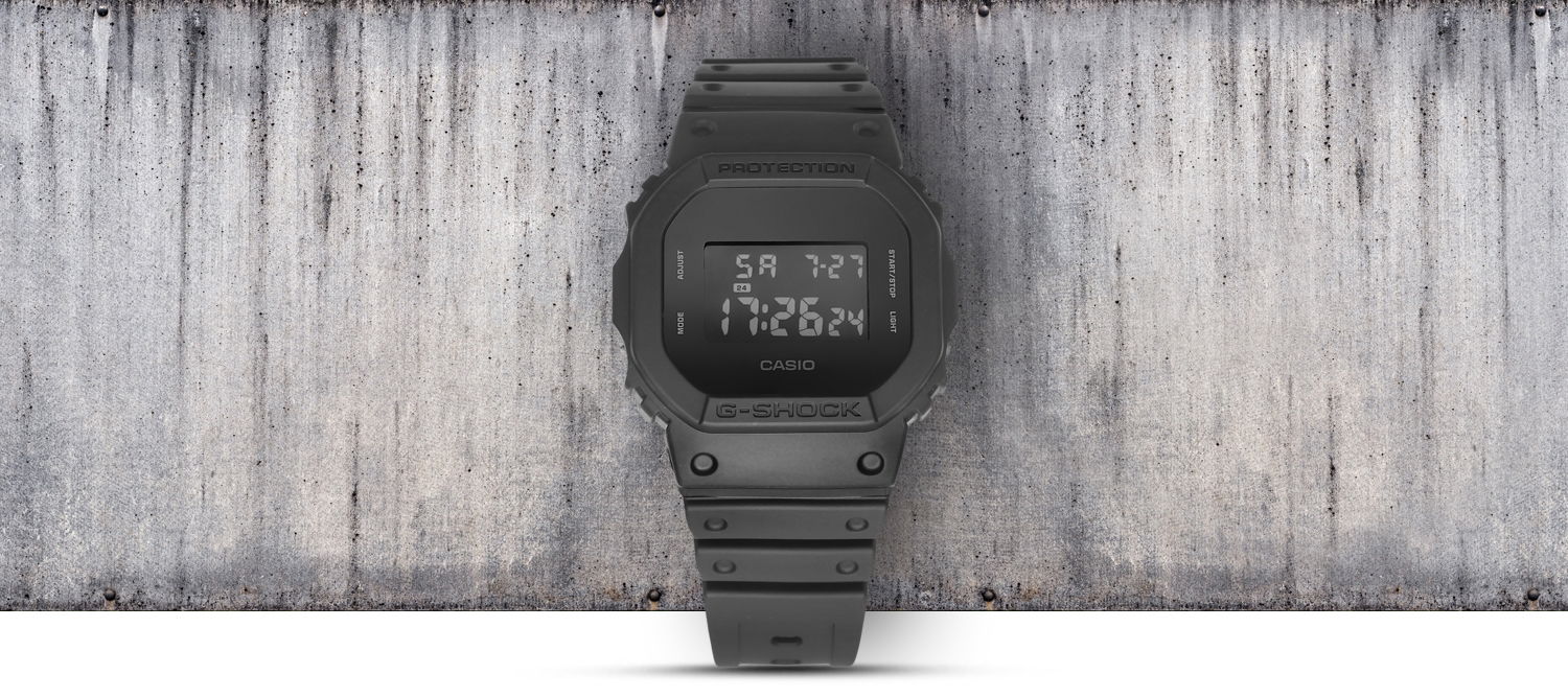 Zegarek został wykonany z tworzywa sztucznego o podwyższonej wytrzymałości. Konstrukcja zegarka Casio G-Shock została wykonana z niewiarygodną precyzją. Połączenie doświadczenia marki Casio sprawiło, że powstał najbardziej wytrzymały zegarek na świecie w postaci serii G-Shock.