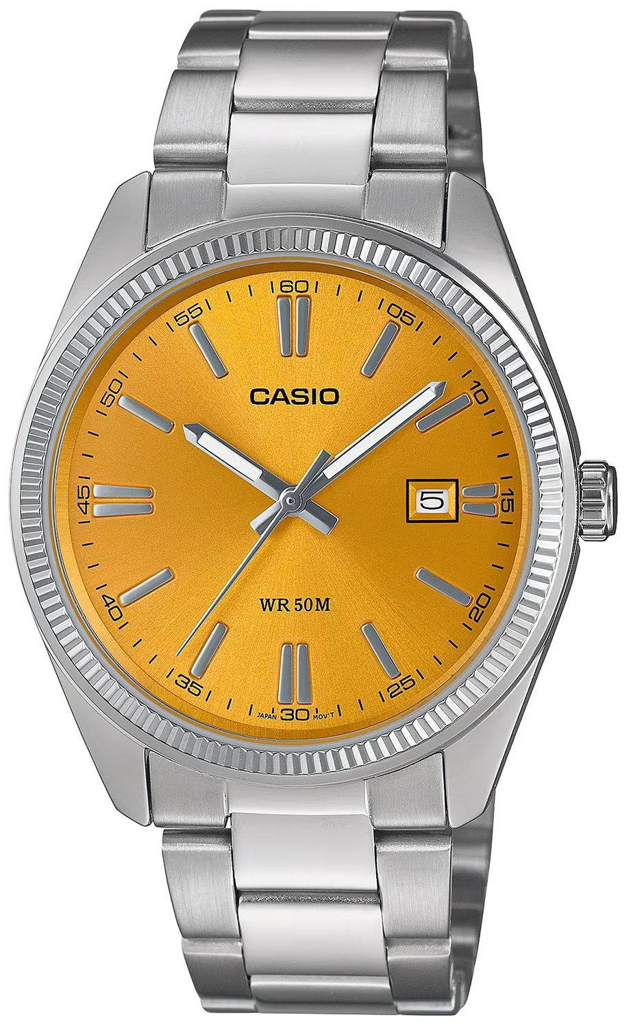 Model należy do kolekcji Casio Classic, która charakteryzuje się eleganckimi, prostymi wzorami stawiającymi na ponadczasowy styl. Srebrna koperta pięknie harmonizuje ze złotą tarczą, tworząc ponadczasowy kontrast idealny zarówno do formalnych, jak i codziennych stylizacji. Delikatny połysk srebrnych indeksów i wskazówek, które dodatkowo wypełniono fluorescencyjną powłoką, zapewnia doskonałą czytelność także w warunkach słabego oświetlenia. Całość dopełnia solidna, srebrna bransoleta wykonana ze stali nierdzewnej, która dodaje zegarkowi elegancji i sprawia, że jest on wygodny w noszeniu. Ten harmonijny dobór kolorów i detali sprawia, że model MTP-1302PD-9AVEF stanowi idealne połączenie klasyki i współczesnego stylu.