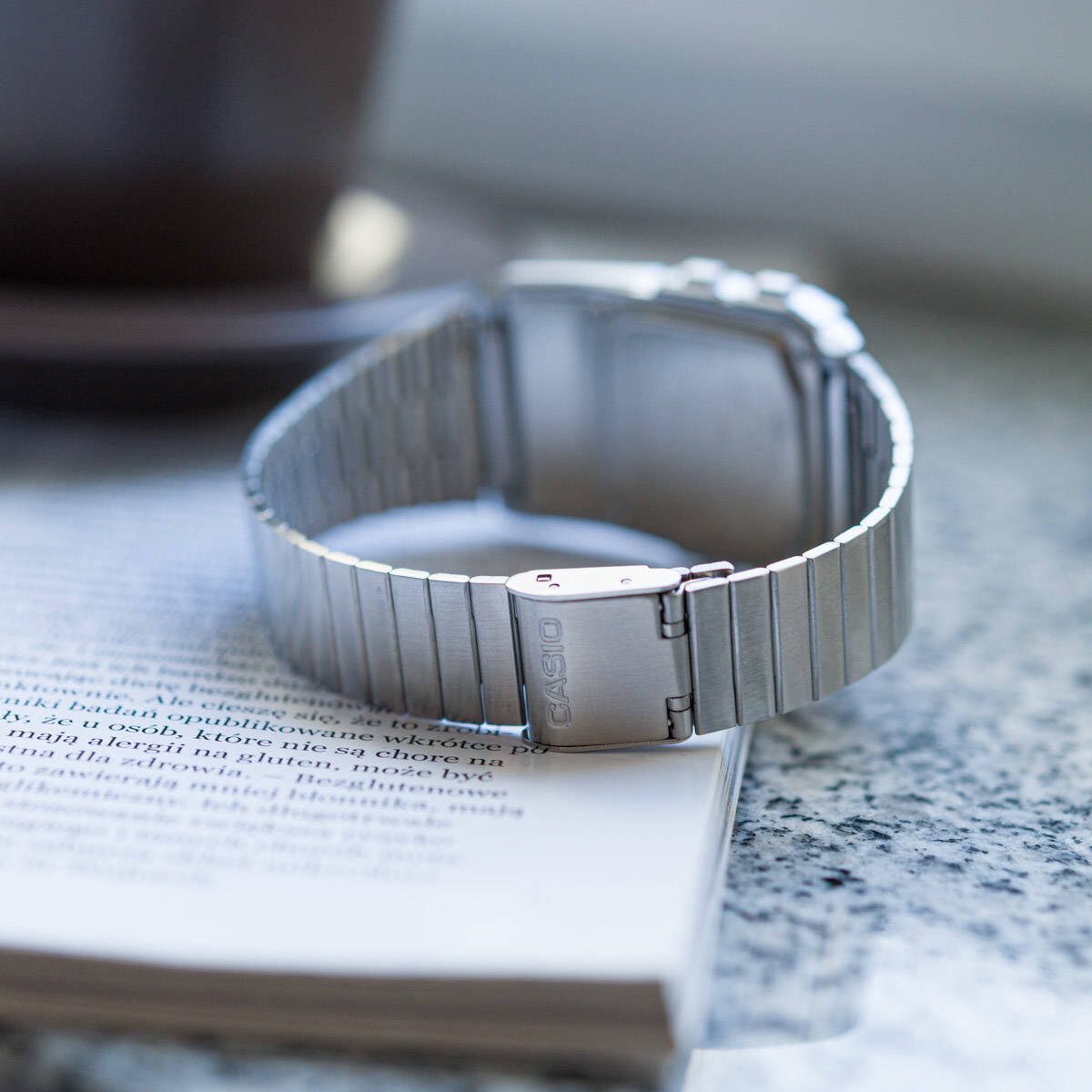 Zegarek Casio Vintage wyróżnia się także klasą wodoszczelności WR30, co oznacza, że jest odporny na zachlapania. Akrylowe szkło chroni tarczę przed uszkodzeniami, a elegancka srebrna koperta o grubości 7 mm oraz szerokości 24 mm podkreśla jego stylowy design. Dodatkowo, możliwość grawerowania sprawia, że może stać się doskonałym prezentem dla bliskiej osoby.