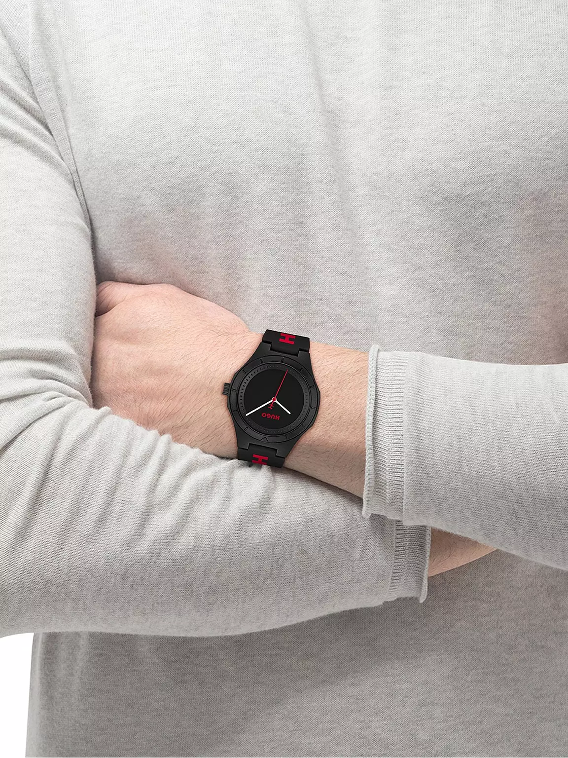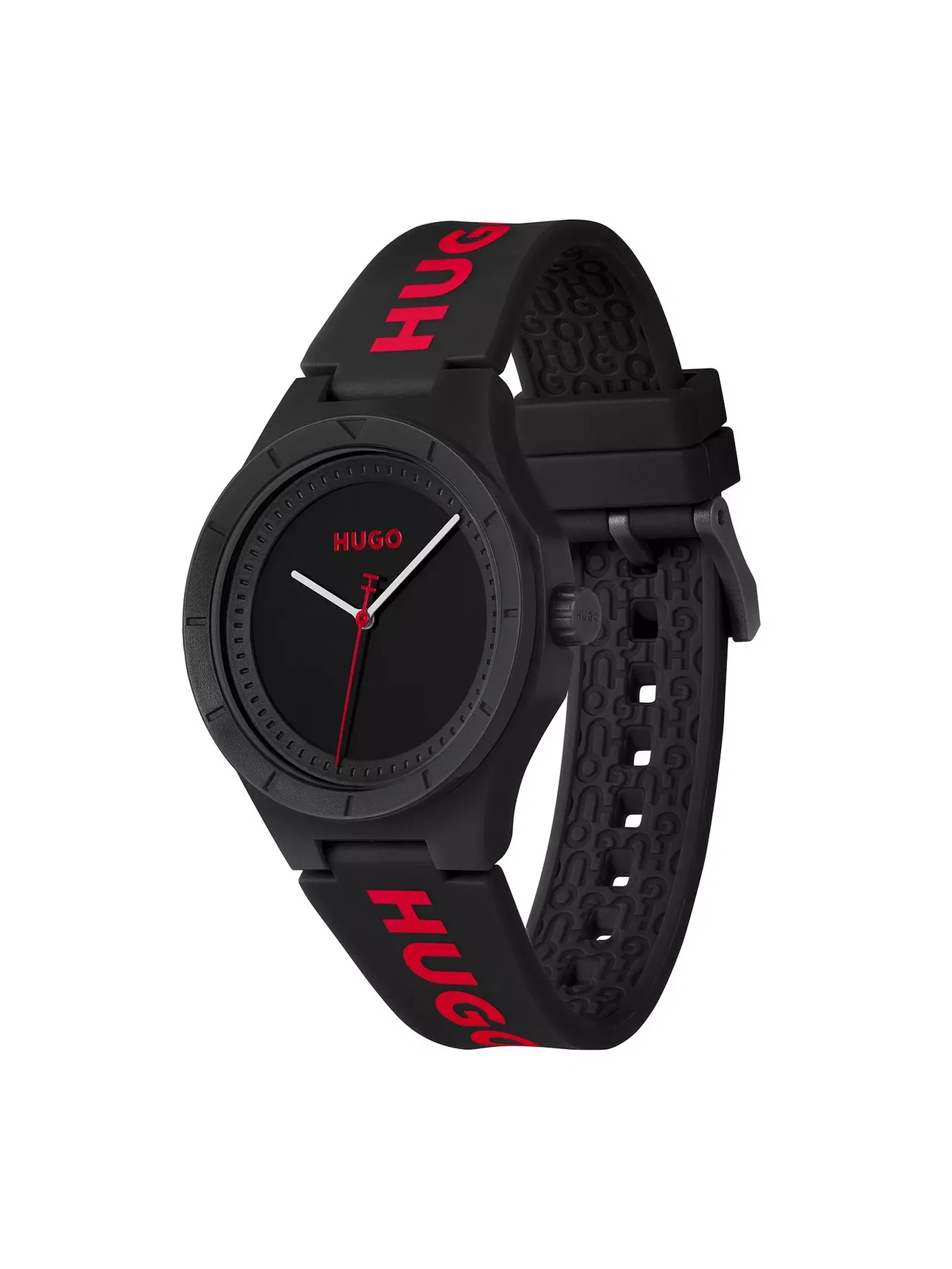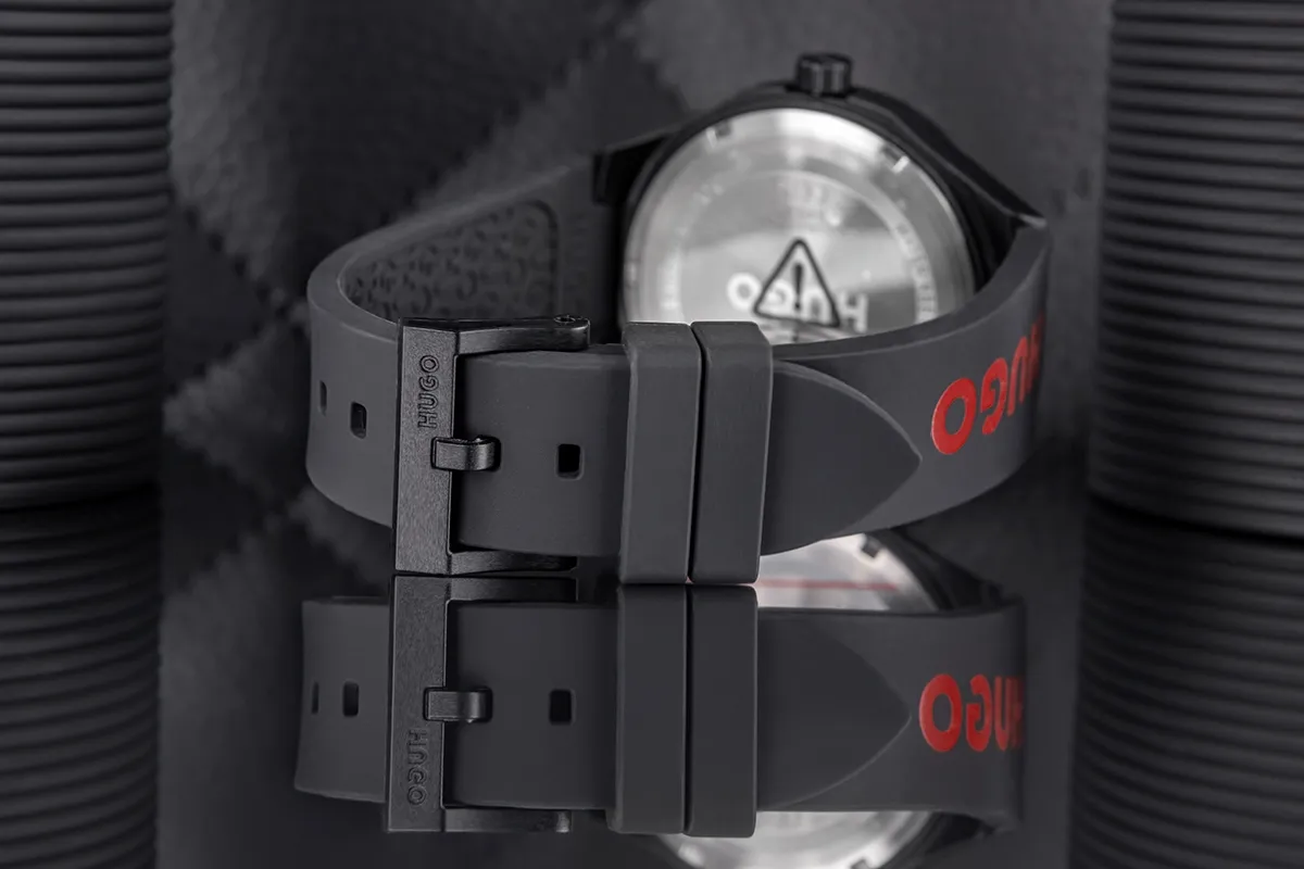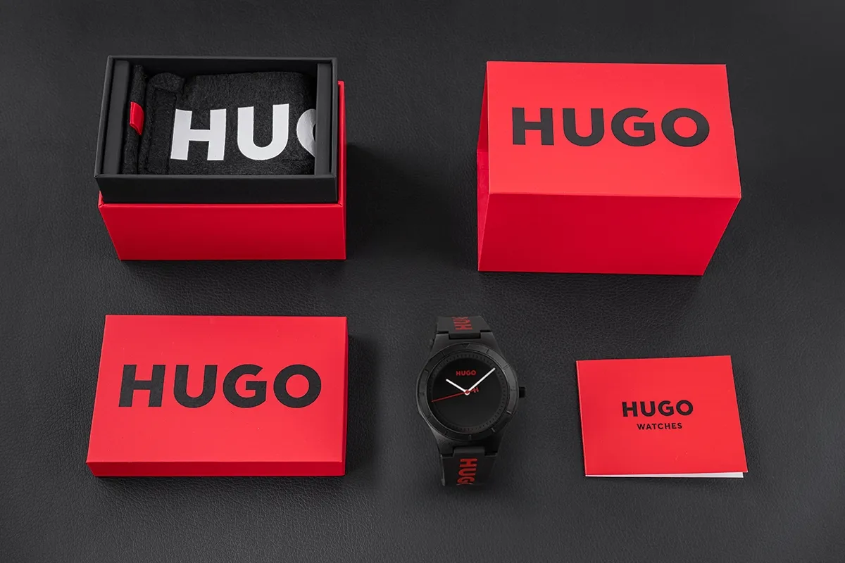 Nosząc Hugo Black pokazujesz, że liczy się nie tylko czas, ale również styl, z jakim go przeżywasz. To nie model, który znika w tle – to zegarek, który głośno podkreśla Twój charakter. Solidny, czarny pasek z dużym logo Hugo w czerwieni nadaje zegarkowi mocnego, miejskiego charakteru, który idealnie łączy sportowy luz z nowoczesnym stylem. Ta odważna kombinacja kolorów – czerni i czerwieni – działa jak magnes na spojrzenia i dodaje Ci pewności w każdej sytuacji.