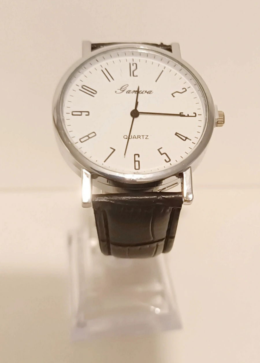 Elegancki klasyczny zegarek z dużą widoczna tarcza i nową baterią.
