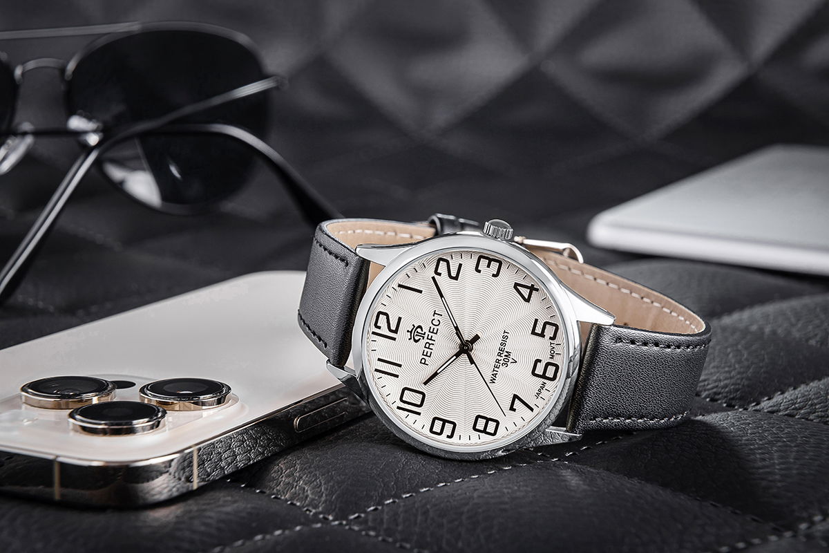 Męski zegarek Perfect wyróżnia się minimalistycznym designem, z klasycznym wskazaniem godzin i minut oraz sekund. To proste, a zarazem eleganckie rozwiązanie, które dodaje męskiej dłoni wyjątkowego szyku, ale także podkreśla jej charakter i klasę.