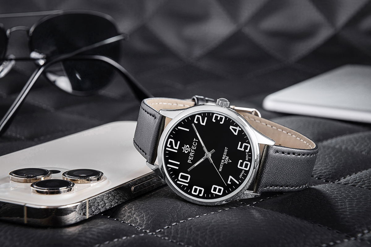 Męski zegarek Perfect wyróżnia się minimalistycznym designem, z klasycznym wskazaniem godzin i minut oraz sekund. To proste, a zarazem eleganckie rozwiązanie, które dodaje męskiej dłoni wyjątkowego szyku, ale także podkreśla jej charakter i klasę.